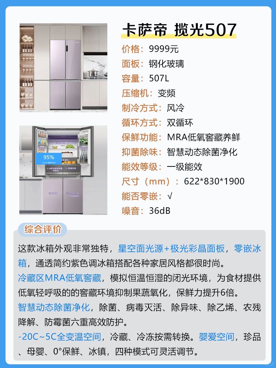 高端款(9000-12000元):卡萨帝 揽光507、卡萨帝 551