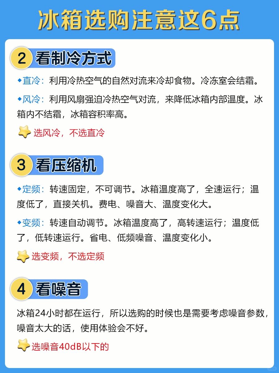 冰箱24小时都在运行,所以选购的时候也是需要考虑噪音参数,建议选噪音40dB以下的。