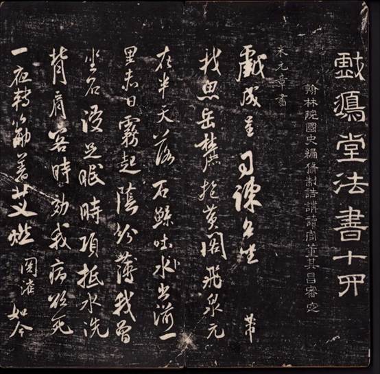 董其昌一生致力于收藏前人的法书名作,《戏鸿堂帖》的辑刻就是他收藏活动的结晶。他通过此帖展示其崇尚晋唐、追求“淡远”“自然”的审美主张;将平生所见所藏的晋唐宋元名家墨迹“化身千百”,传之后世;作为当时的鉴藏权威,试图通过此帖建立一个新的书法经典谱系。