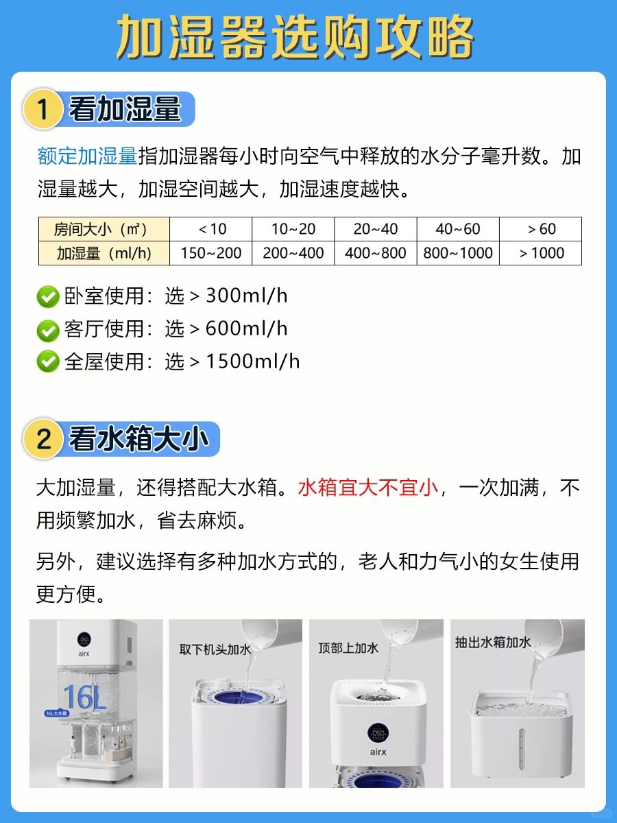 ✅选无雾加湿器,加湿效果好,可加直来水、无雾水不产生水渍,还带滤芯可过滤灰尘、细菌