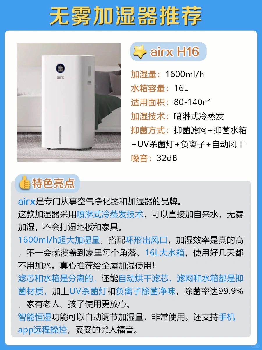 👉🏻给大家推荐一款无雾加湿器airx H16,他家是专门从事空气净化器和加湿器的品牌。