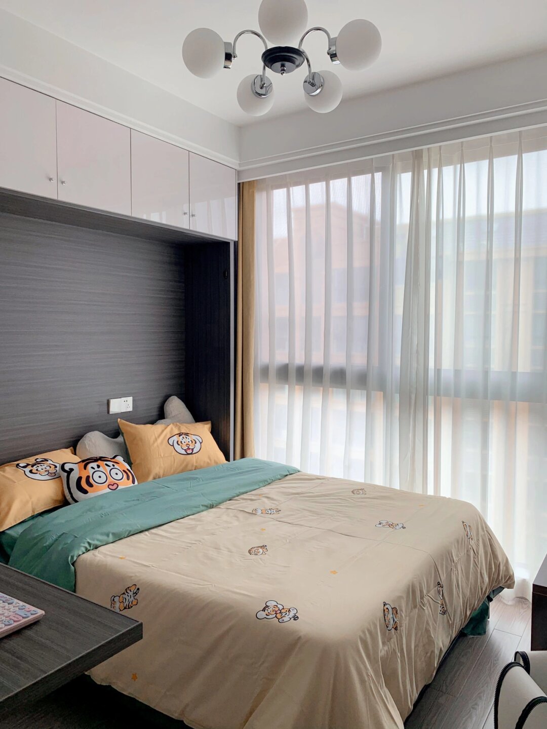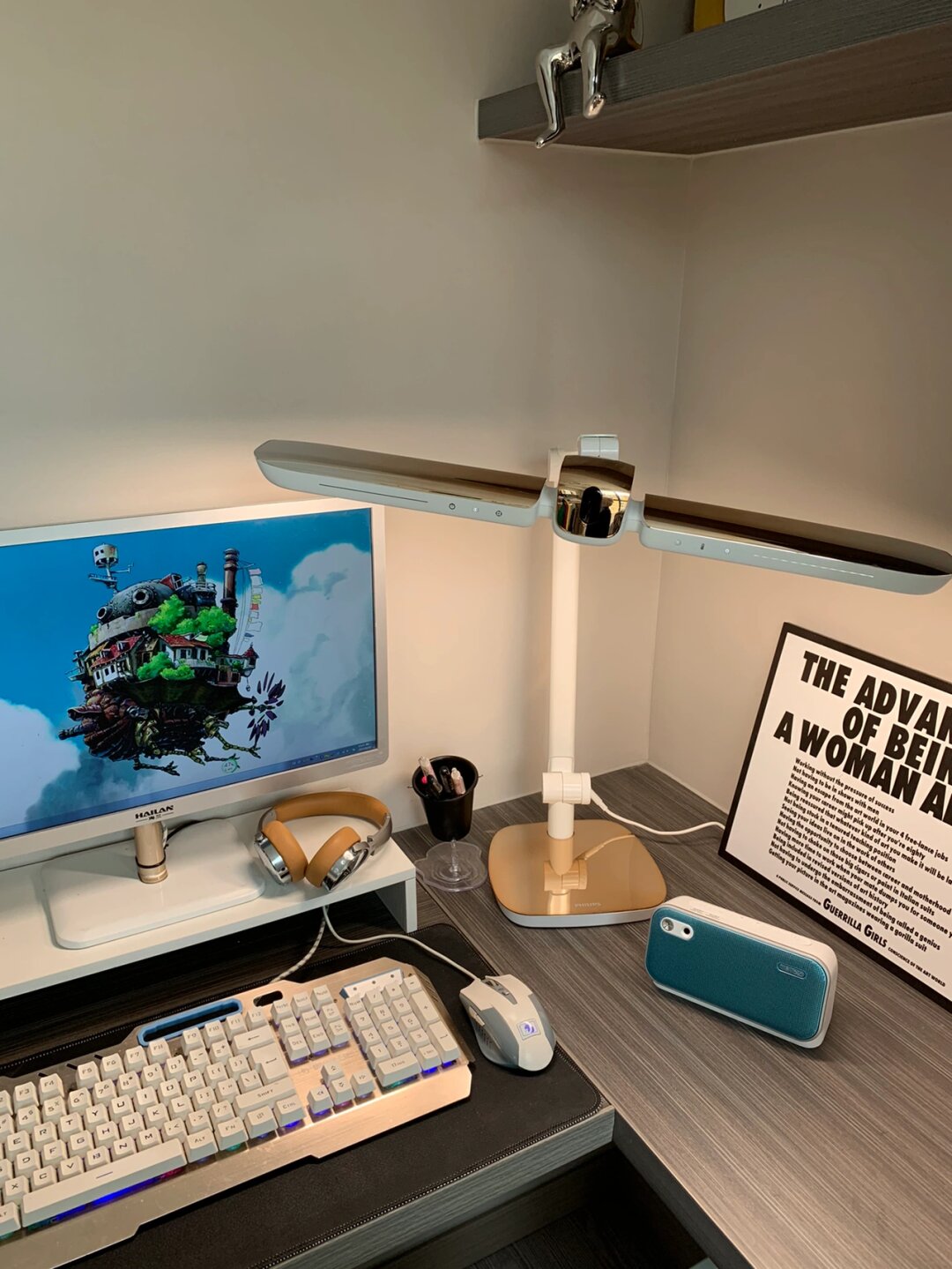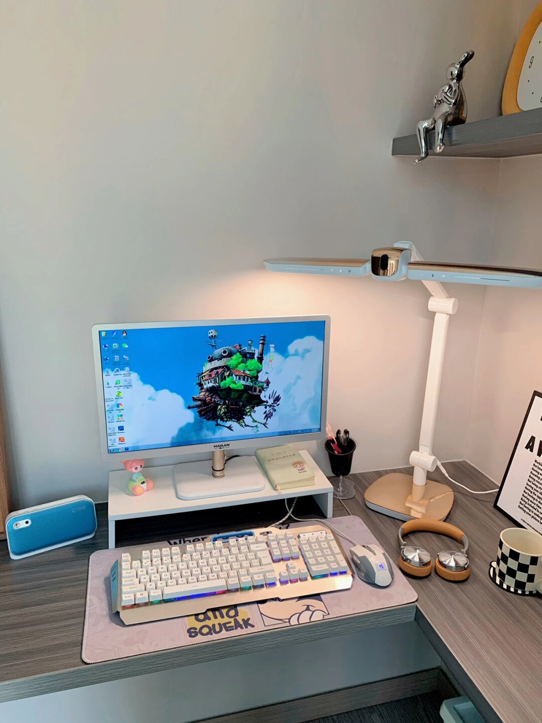 7㎡卧室大改造,L型半包围书桌可太香了吧 我家空出来的小房间7平左右,为了能实现休息,学习,娱乐改造成了一下 关于房间尺寸:2.7m×2.7m 关于隐形床:1.5m×1.9m 不做传统的榻榻米,而是做了一个隐形床,直接可以翻起来收纳 关于书桌: 旁边做了一排L型书桌1.83m长,0.5m宽,底下用三脚支架固定墙上,平时居家办公,学习都在这 关于书桌好物: 书桌用品都很简单,一台工作电脑,一台护眼灯,桌面小,所以加了一个增高支架 最近暑假上网课,安排了曲悦小U学习音箱,小巧一个,体验还蛮不错的,三种模式可以切换。 上直播课时,人声清晰,听起来很自然。平时休息时我都会用它听听音乐,放松娱乐。 . 飞利浦A7智能护眼台灯,简约大气,日常用来办公,学习都很合适。光照面积大,整个长书桌都能照着。无极调节色温和亮度。我很喜欢它的40分钟休息提醒,用来阅读学习,更高效。自带智能夜灯模式设置,再也不怕晚上抹黑上床了 夜深人静的时候,听着音乐,戴着无线耳机,柔和的光线下,整个状态非常惬意放松。 . 桌底下还放了个收纳箱,里面放着各种小零食桌底下还放了个收纳箱,里面放着各种小零食 . 一间可以休息,娱乐,办公的书房,真的是爱了~