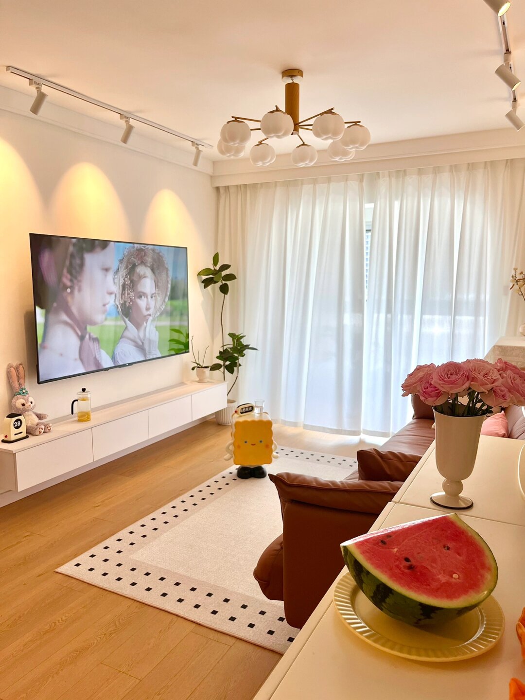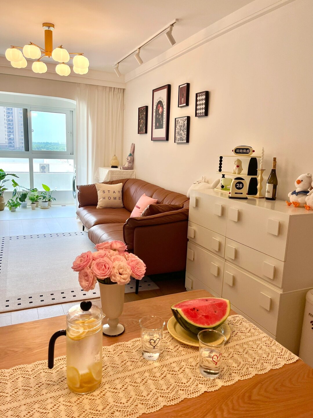 7w搞定58平奶油小家,我真的没骗人 感谢这个家,让我有了6k的粉,你们的肯定,让我感觉到了温暖和感动 ~ 关于我家 [微风] 坐标:江苏苏州 [微风] 面积:建面72,套内58 [微风] 户型:两室一厅 [微风] 装修:硬加软装落地10w [微风] 风格:原木奶油风,普通人家简单清爽就好! 关于硬装 拆掉推拉门,阳台打通封窗,瞬间大一倍 不做吊顶,简单走一圈石膏线不压层高不积灰层 客餐厅一体,不显局促,整体视野开阔 小户型客厅铺木地板,温馨又显大 关于软装 家里配色不要太多,不耐看时间久了会腻 罗马杆的窗帘会露光,还是做窗帘盒好 小户型去掉笨重茶几,打算卫生比较方便 客厅选择了棉花吊灯,真的很温油 ~ 好喜欢夏天甜蜜又美好,抱着甜甜的配上加冰的,躺在地毯上发呆追剧,一切的烦躁与闷热都消失了~