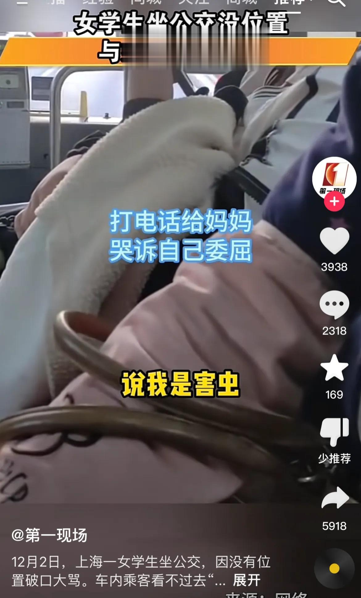 一位女生在公共汽车上要求别人给她让座,并咆哮骂人,被大家拒绝并批评训斥后,这位女生委屈地嚎啕大哭给妈妈打电话告状,说别人不给让座还骂她是害虫……. 不知道说什么了,真心希望这段视频不是真的