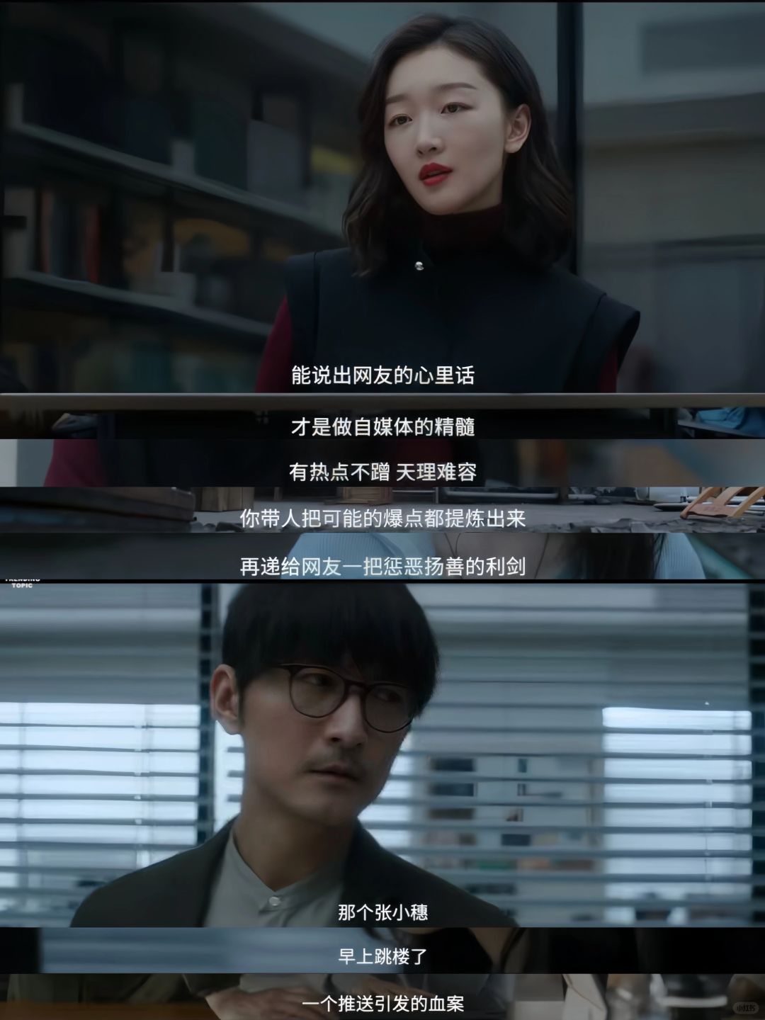 在《热搜》里,似乎没有多少人注意到艾米这个角色——她是集团老总的贴身秘书,工位就在大厦顶楼老总办公室的外面。同时,她曾经是一个需要救助的贫困女孩,是受害者张小穗的学姐,也是和张小穗有着相同遭遇的人。