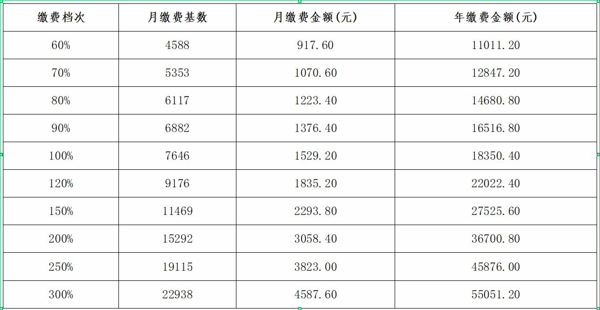 选择60%缴费档次的,应按今年同档次缴费基数计算的缴费金额进行补差。