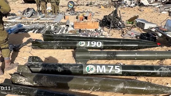 以色列国防军在最近的一次行动中,找到了卡桑旅储备在加沙地带北部的一批武器装备,它们包括数百枚各种类型的火箭弹和火箭弹发射器、数十枚反装甲导弹、数十枚爆炸装置和定向向以色列中部发射的远程导弹,以及数十枚手榴弹和无人机。以军称这是在加沙地带北部,发现的哈马斯最大武器库存之一。以色列军方还表示,所有武器均被部队缴获,部分在现场引爆,部分被带回去做跟踪调查。
