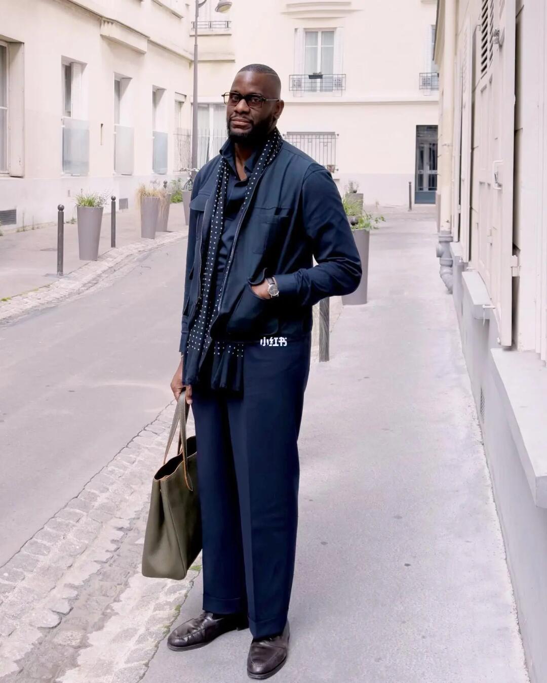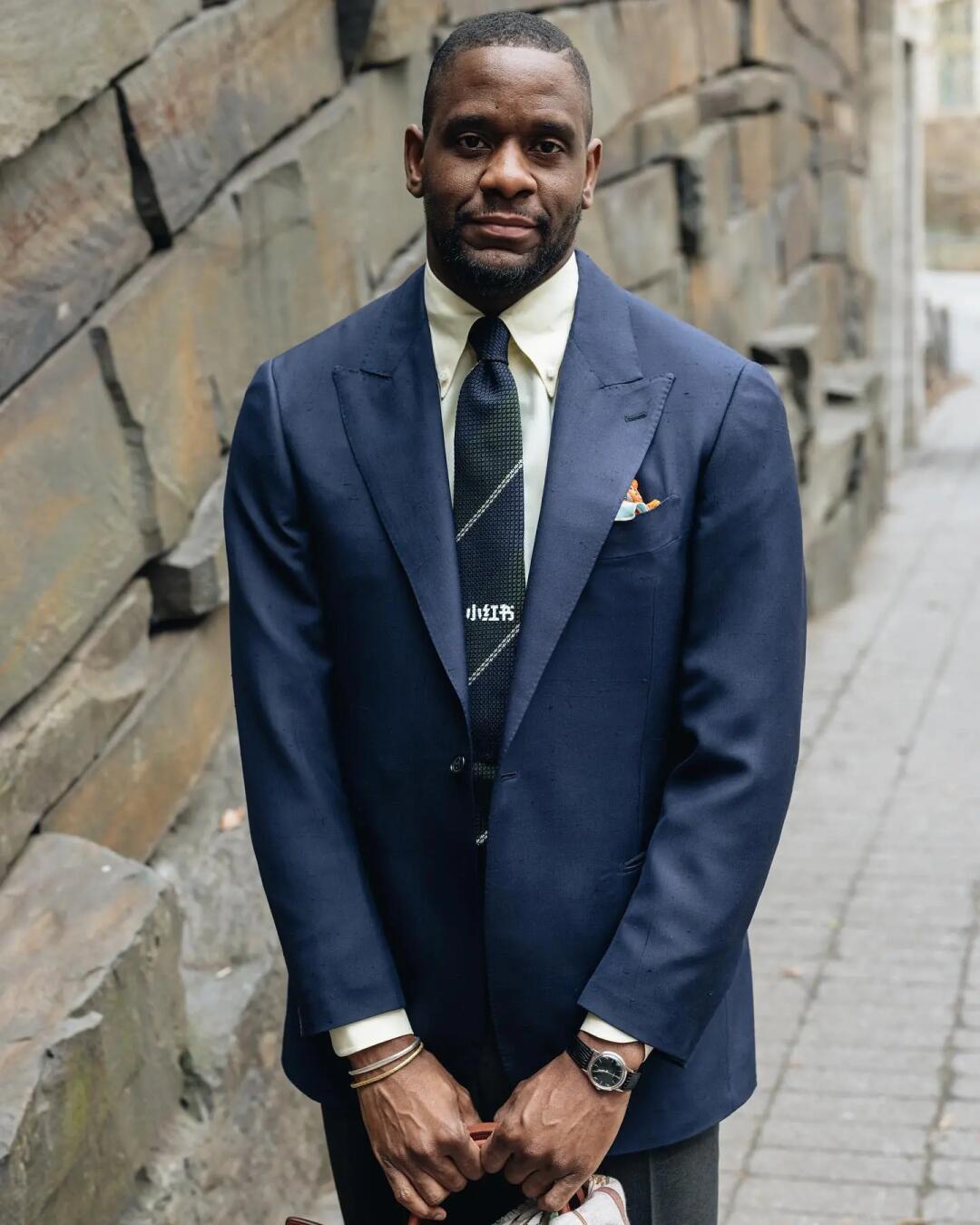 Stephon Carson是纽约经典男装店The Armoury的销售顾问,同时也是Alfargo's流动跳蚤市场的创办人。他身上展现出了多元化的时尚风格,融合了意式的体态曲线和精致的质感,同时夹杂着美式传统的学院元素和军事风格。有时还能感受到一丝复古和潮流的元素,使他的着装风格充满了独特的个性和时尚魅力。