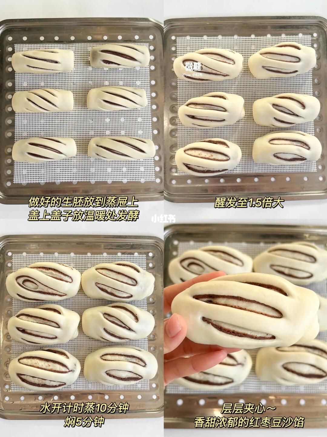 今天自己在家做了这款超健康好吃的红枣豆沙卷‼️强烈推荐大家去做~不加一点糖!真的超级好吃的😋非常暄软,层层夹心,浓郁的枣香、豆沙香🥰真的比外面卖的好吃太多了。外面的豆沙馅满满的高科技😵💫 这款馒头卷全家老少都喜欢💕小宝宝也可以吃滴~ ⭕️准备食材: 馅料:红豆60克,去核红枣45克,清水210毫升 面团:面粉250克,牛奶150毫升,酵母2克 (我个人感觉味道是刚好的,面团加了牛奶有丝丝甜味,红枣本身也是挺甜的,所以做出来的馅料甜度正合适) 👩🏻🍳做法看图片教程啦宝子们~太晚了哄娃睡觉咯~