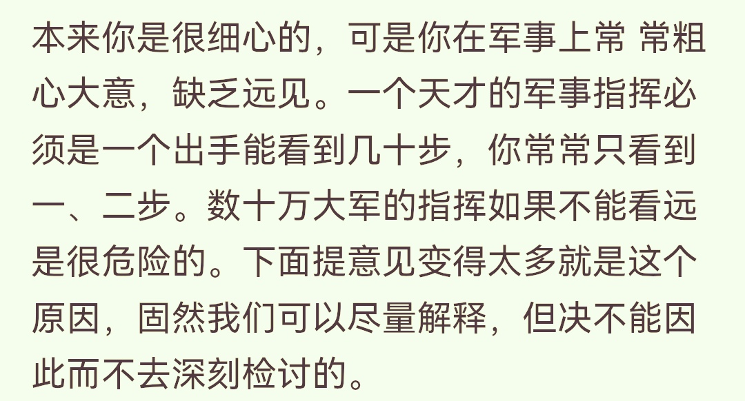 第四,粟裕在华野成立后长期负责全军的军事部署和指挥工作,在军事谋划、部署和指挥上已经具备了代替陈毅执掌华野的能力。从陈毅、谭震林的信函中,可以看出此时的粟裕,已经与彭德怀、刘伯承、林彪、陈赓并列中共五大顶级将帅之行列,也深得中央及中央军委的高度信任。粟裕在华野“七月分兵”后,经历了南(麻)临(朐)战役的失败后,在沙土集战役上重新收获了自信,也重新总结了经验教训,军事谋划、部署和指挥更加游刃有余。