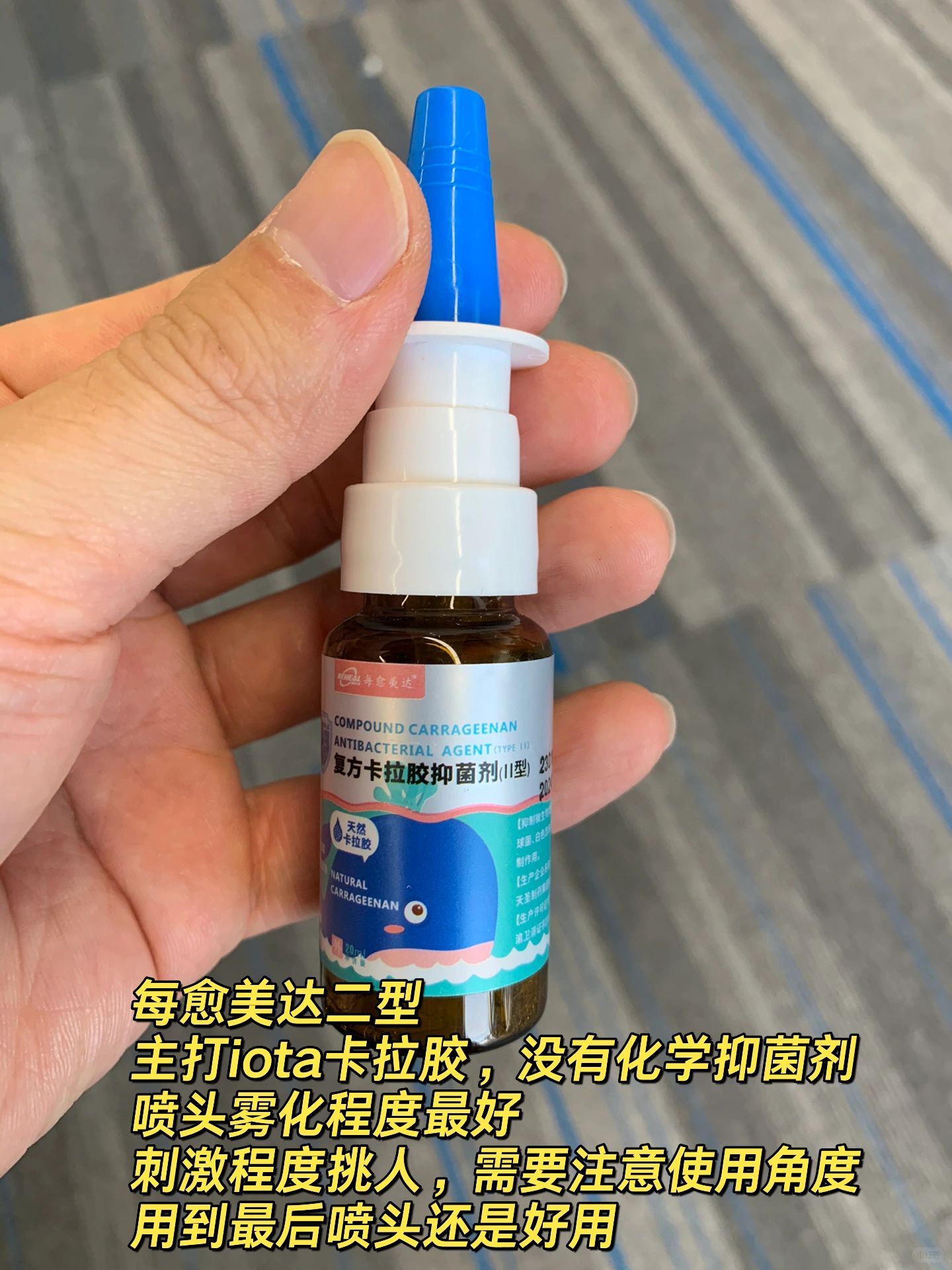 [哇R]最后是每愈美达二型,主打纯的iota卡拉胶,与欧洲配方看齐,而且没有化学防腐剂,喷头雾化效果基本算三款最好的。目前这个鼻喷有些人反映刺激,目前大多数情况可以通过调整喷射角度来缓解。但要说温和吧,确实比不上flo和dual。不过雾化程度太好了,我个人建立适应后,不注意角度喷上也是没啥问题