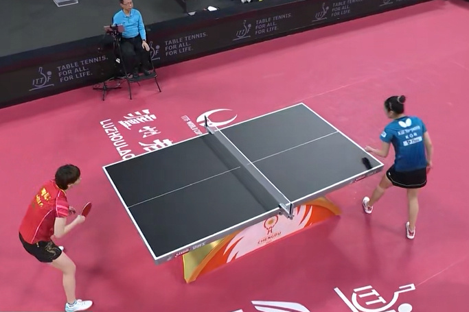 #王曼昱拿下3分##王曼昱3比0金娜英# 实力压制!王曼昱3-0击败金娜英(11-2、11-5、11-7),女单对决拿满3分,中国队总分6-0领先韩国队! 第三盘男单:樊振东vs李尚洙 #乒乓球混合团体世界杯#