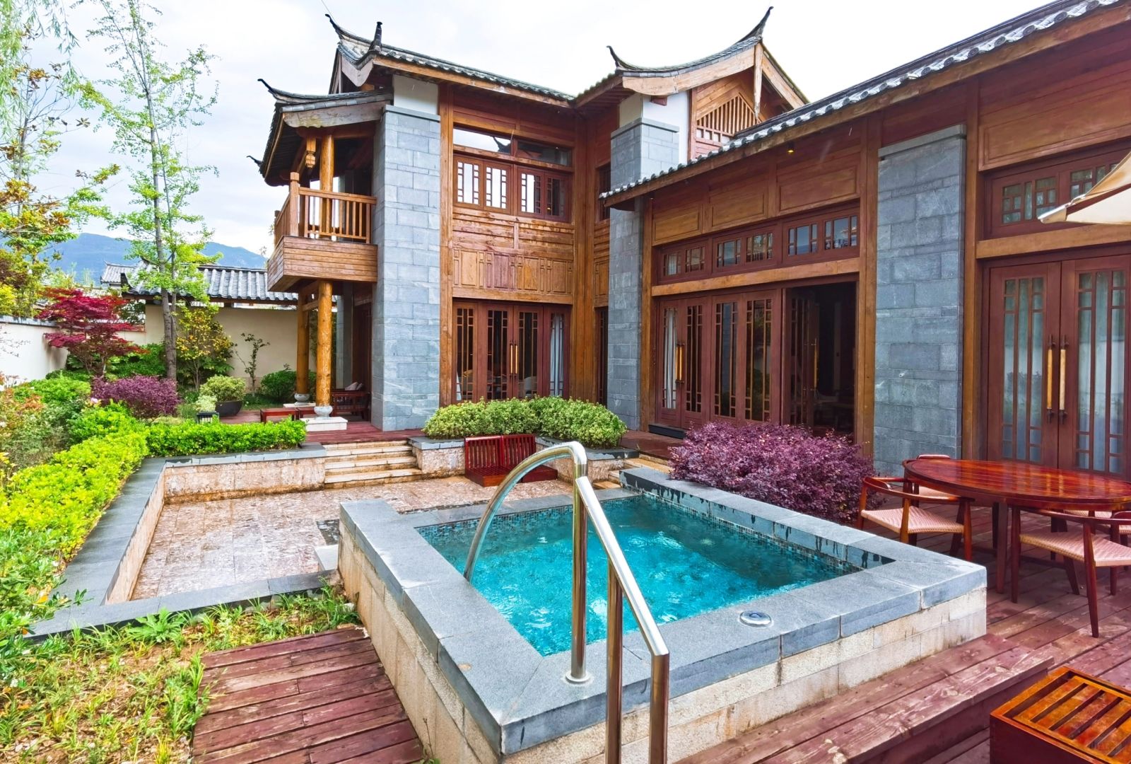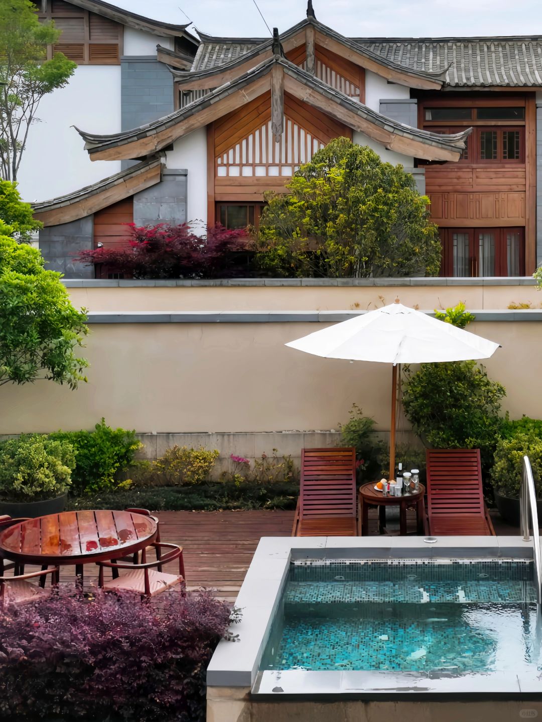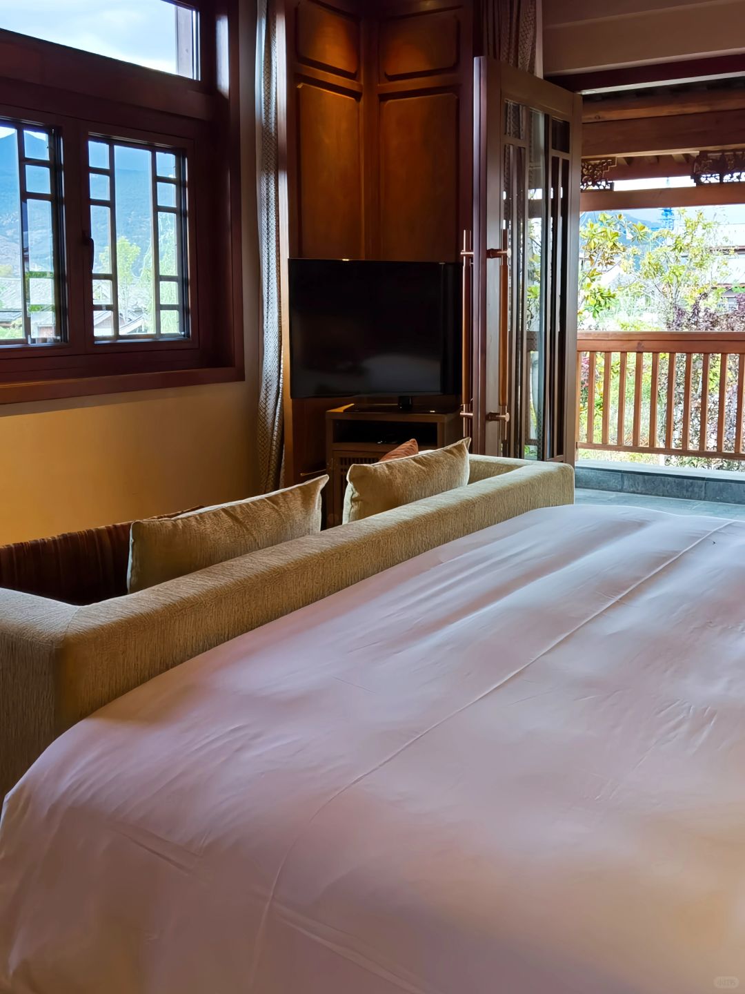 金茂在丽江其实是双酒店,金茂璞修和凯悦臻选(前君悦换牌),金茂璞修以雪山超美瑜伽房在前几年一炮而红,其实凯悦臻选有个宝藏房型,那就是双卧别墅。不到3k一晚的价格,藏式的客厅很有感觉,二楼的大床房可以直接远眺玉龙雪山,一楼院子里的温泉池也十分舒服,温泉泡池是双卧以上房型才有的,单卧没有。