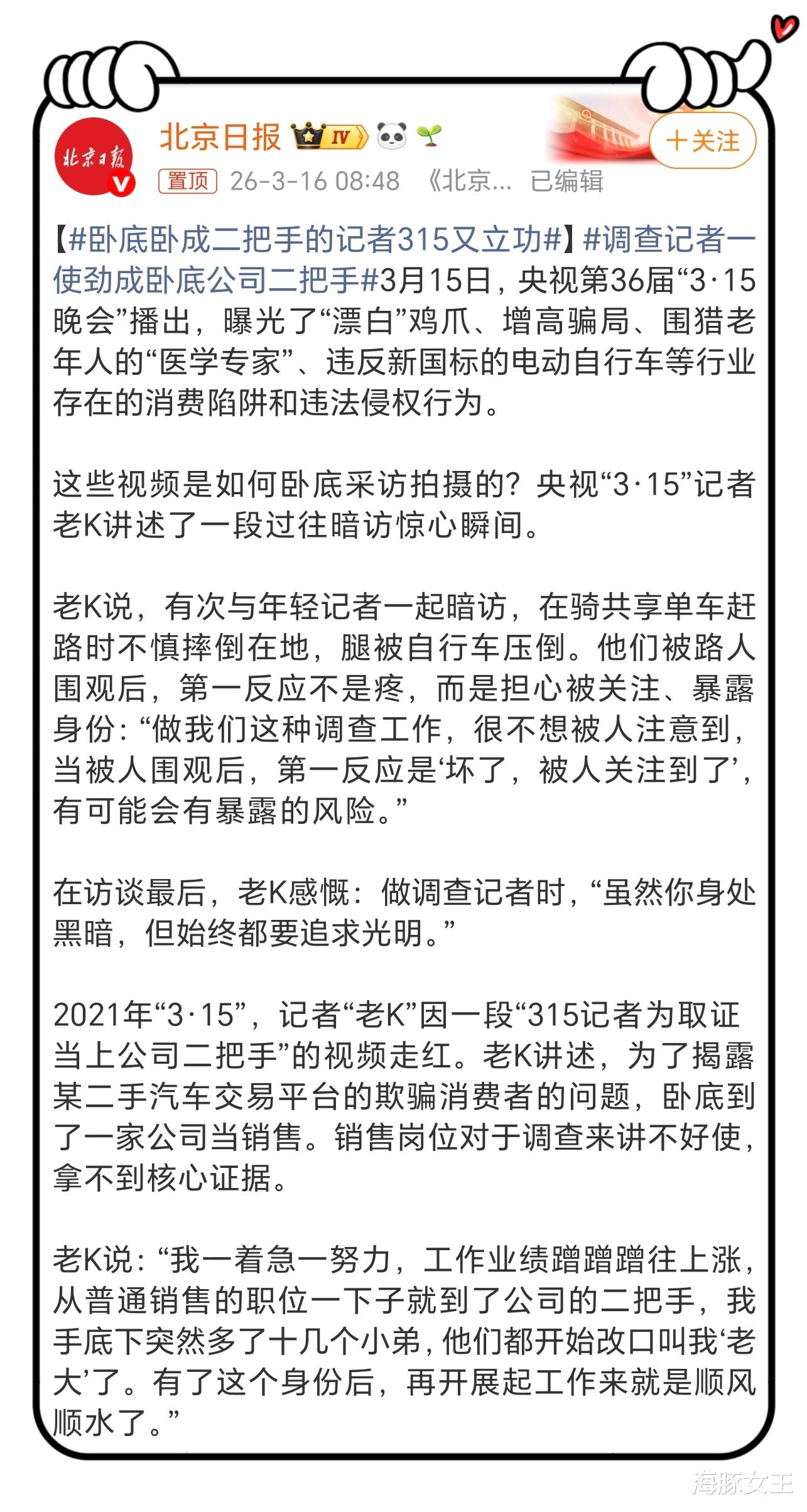 很多行业乱象都是卧底记者曝光,他们是新时代的孤勇者,向光而行敢于揭露行业黑暗,没有他们,我们就不会知道各大行业还有那么多黑幕!