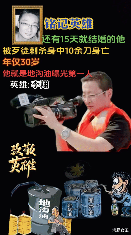 他为全国人民的食品安全努力过,让老百姓知道地沟油的危害,他用血肉之躯,为老百姓揭开血淋淋的真相,值得永远被铭记。