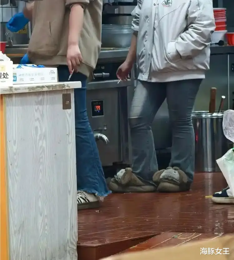 315晚会之后,刘文祥麻辣烫又被曝出,3名员工在后厨穿着拖鞋,一边抽烟一边吐槽:“不查源头厂家,查我们干嘛”。