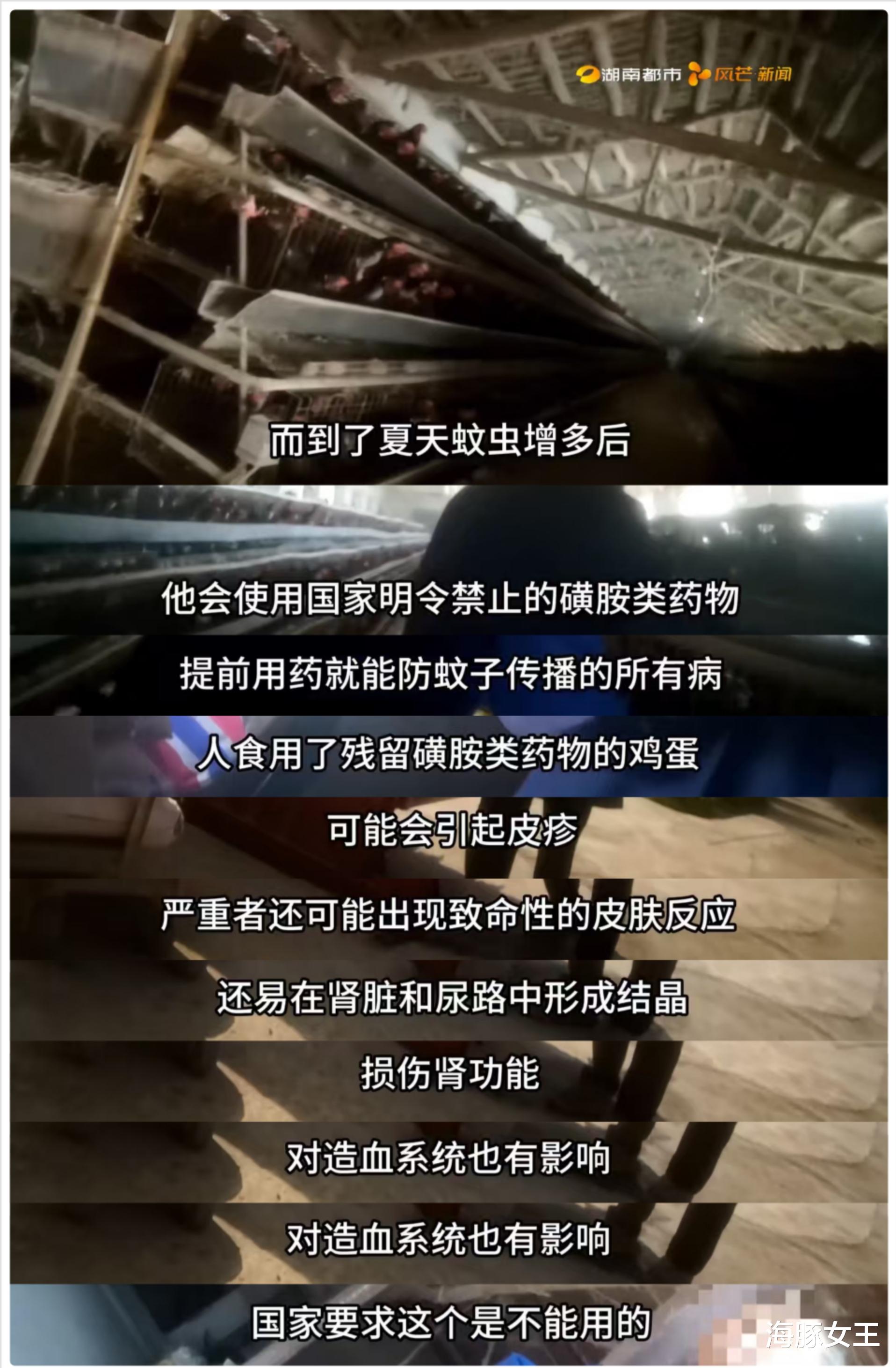 到了夏天,蚊虫增多后,养鸡场会违规使用国家禁止的磺胺类药物。