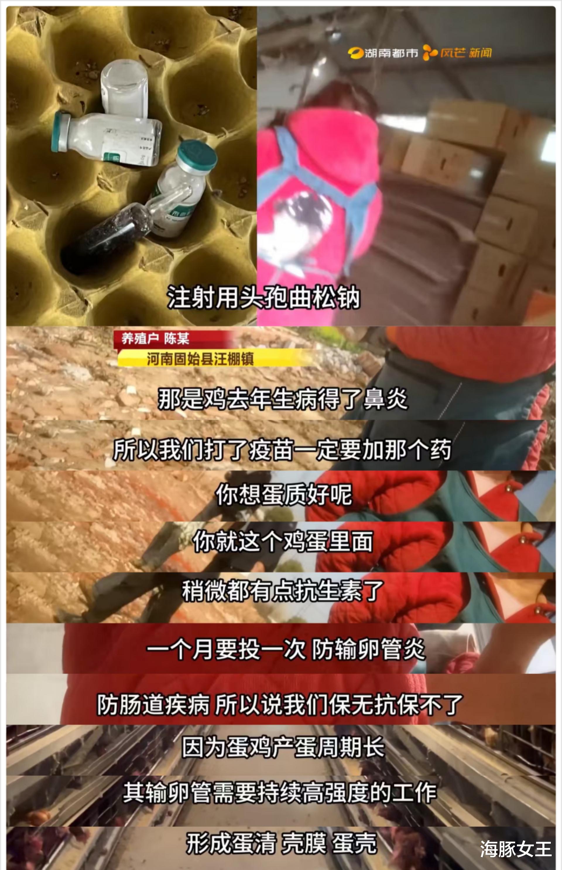 为了防止固始鸡生病,给固始鸡打各种抗生素,违规使用人用的头孢曲松钠等。