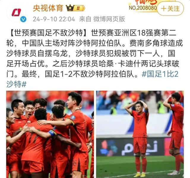 北京时间 9 月 10 日,在 18 强赛第二轮国足主场迎战沙特的比赛中,国足虽在先进球且对方罚下一人的有利局面下,最终却遭遇沙特绝杀。这场比赛中,主教练伊万科维奇的换人调整等临场指挥决策备受质疑,人民日报也评论称中国队痛失好局,主帅难辞其咎,直言 “一将无能,累死三军”。小组赛两轮过后,两连败的中国队已经在小组中垫底。