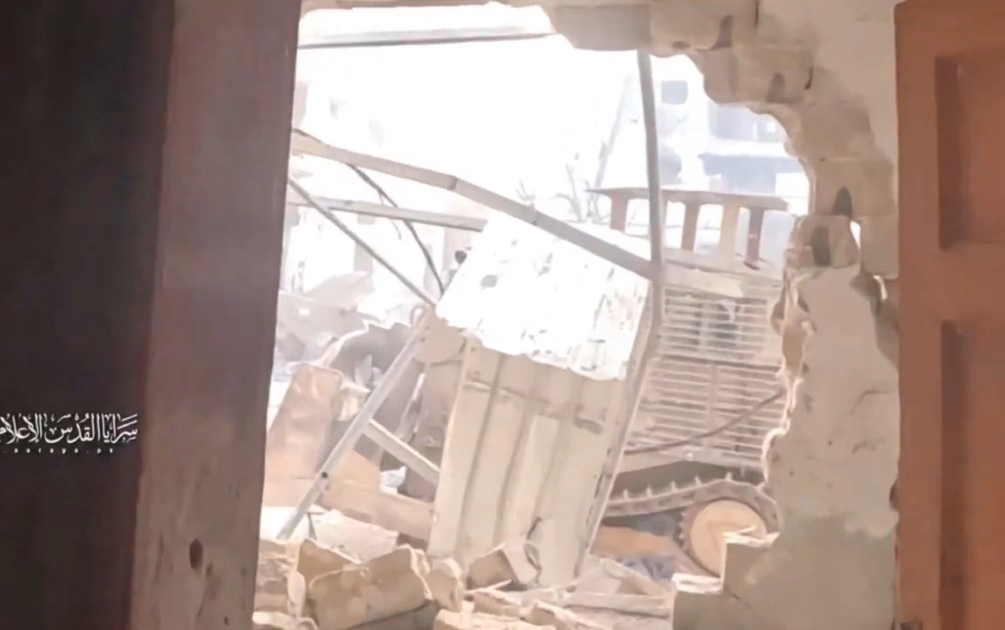 画面中的领头的车辆似乎觉察到了某种危险,竟然把车停了下来,这就给了哈马斯战斗人员轻松瞄准射击的机会,一发亚辛弹,坦克铁皮给掀飞了。