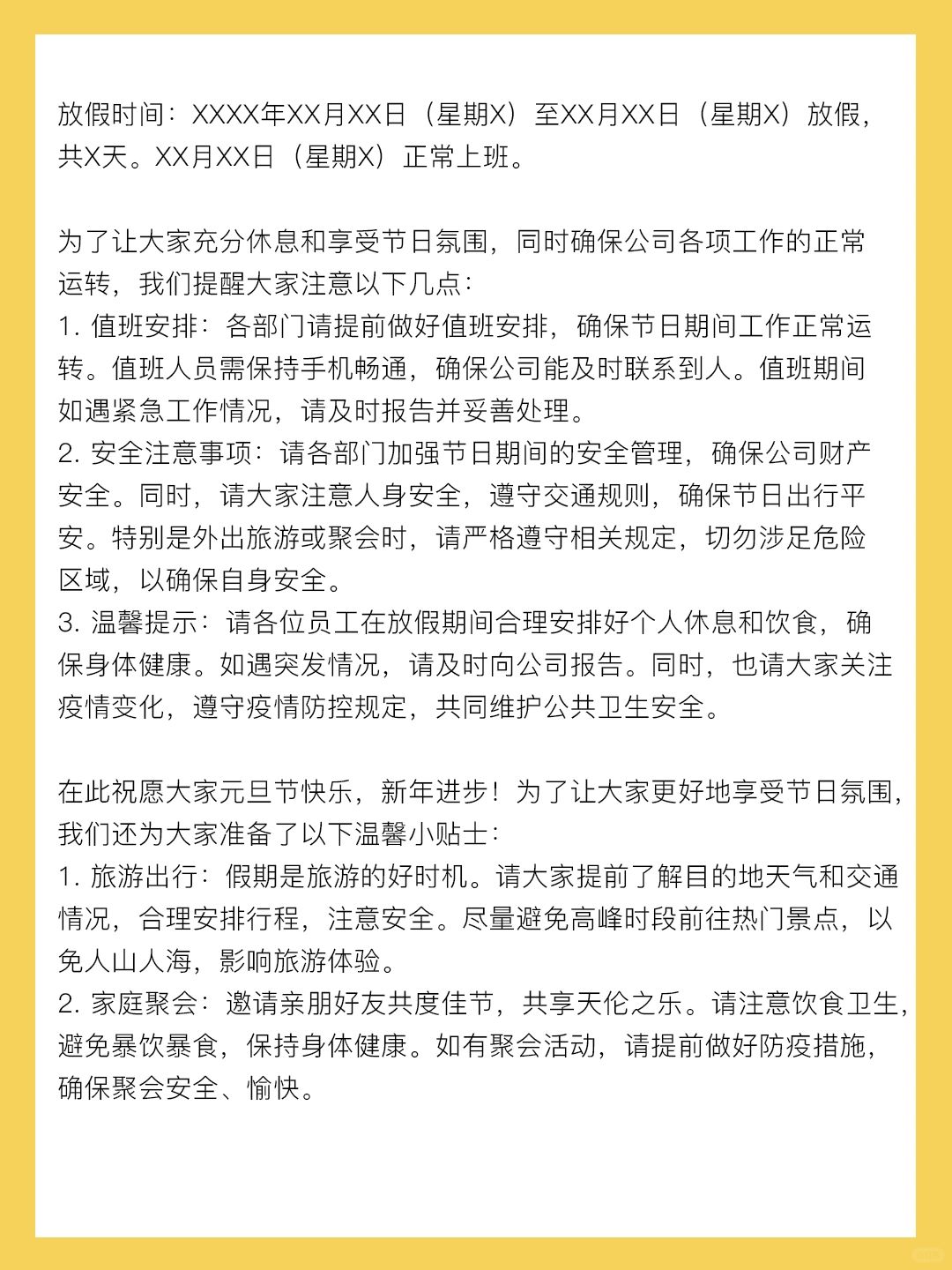 2024年元旦马上就要到了,行政姐妹的放假文案准备好了吗?圈圈分享4篇放假通知模板,可以参考参考哦[偷笑R][偷笑R] . ⭕更多hr干货,可以右划进主页查看👉 ♥️hr资料包,可以留言💬戳圈圈领取 .