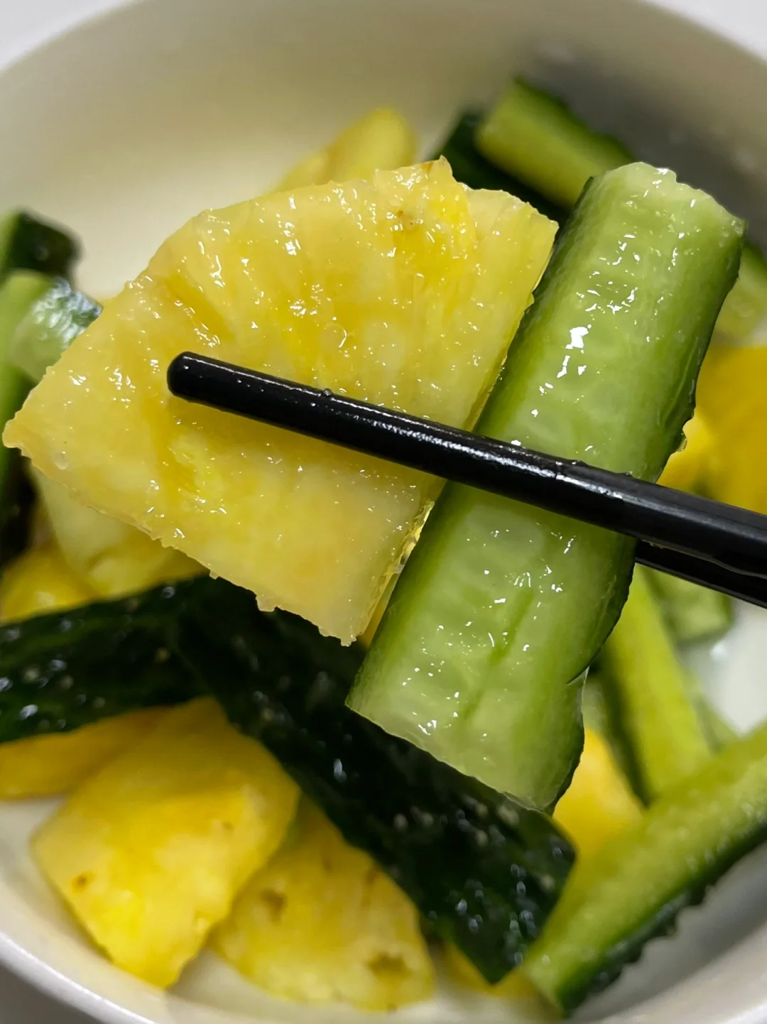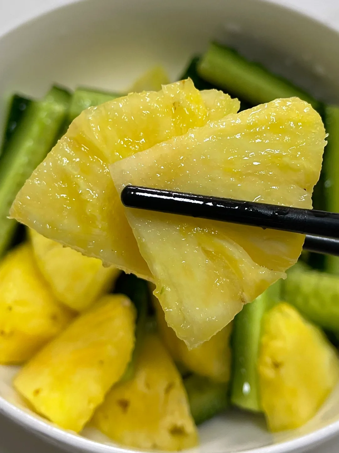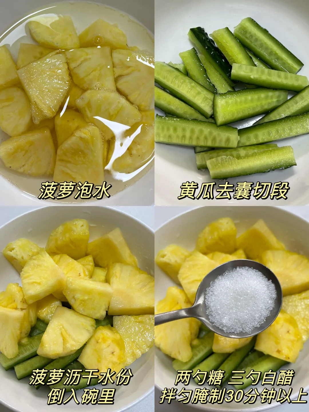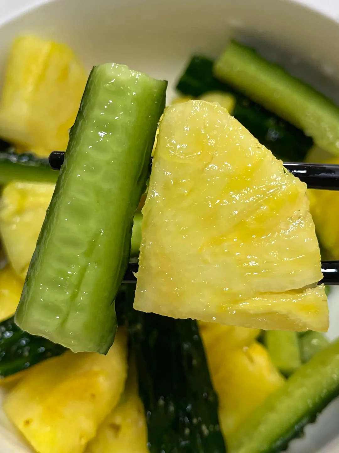 太清爽了!!菠萝拌黄瓜! 信我!这真的不是黑暗料理…hhh 作为餐桌凉菜太绝了! 超解腻!酸酸甜甜的开胃又好吃~ 姐妹们赶紧去试试!!