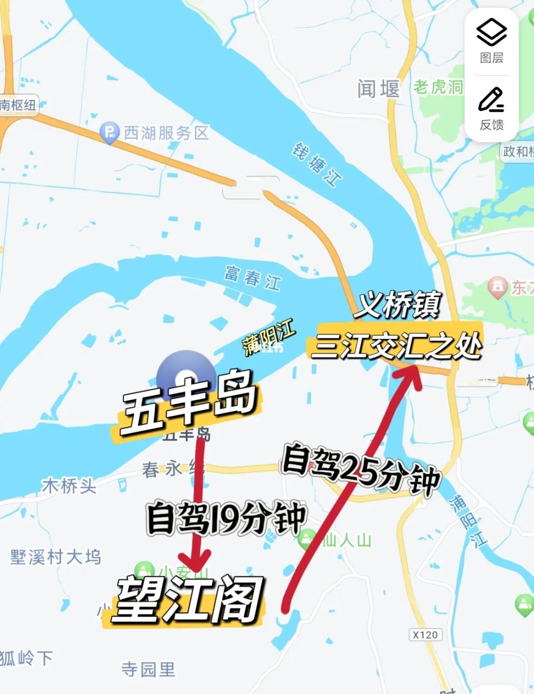 [七R]岛的对面山顶是望江阁,可以开车直达山顶,俯瞰富春江和浦阳江在此汇聚成钱塘江,共赴浩瀚的东海