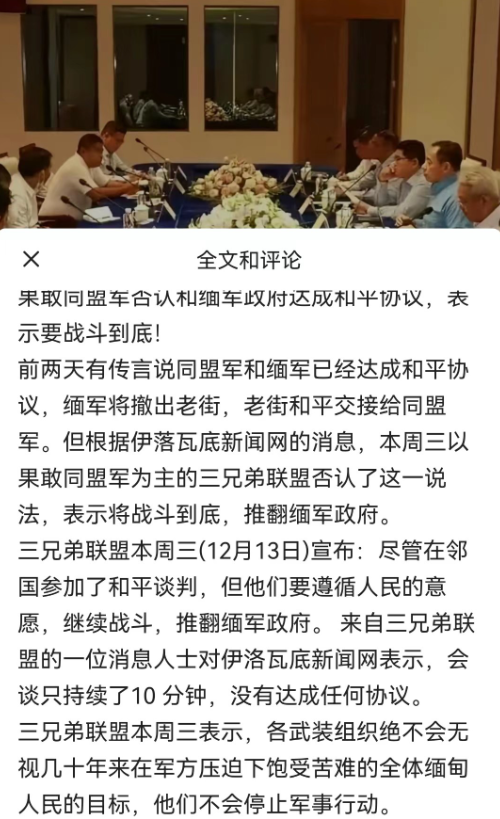 缅北地区的局势,对缅甸政府军相当不利,但是缅甸的谈判代表,死鸭子嘴硬,提出了一系列不合实际的要求。让果敢同盟军暂停进攻,而不说自己撤出老街城区,将会继续驻守大水塘和南天门。那些被联军攻破的据点,缅军要求归还,还有几座重要的要塞,也要归还。