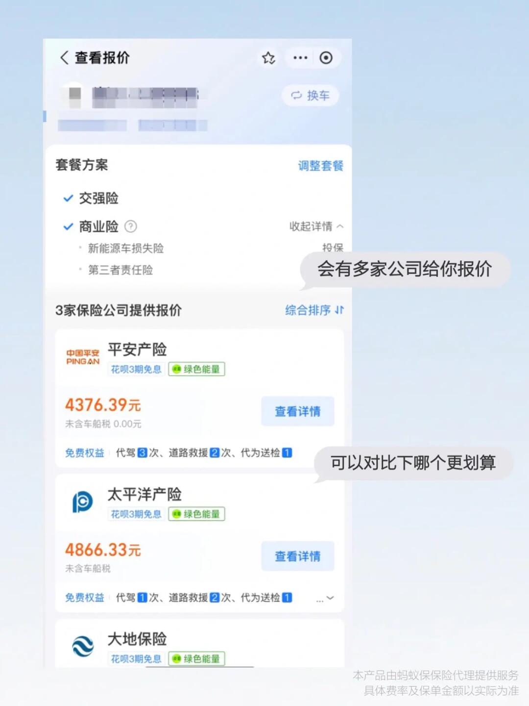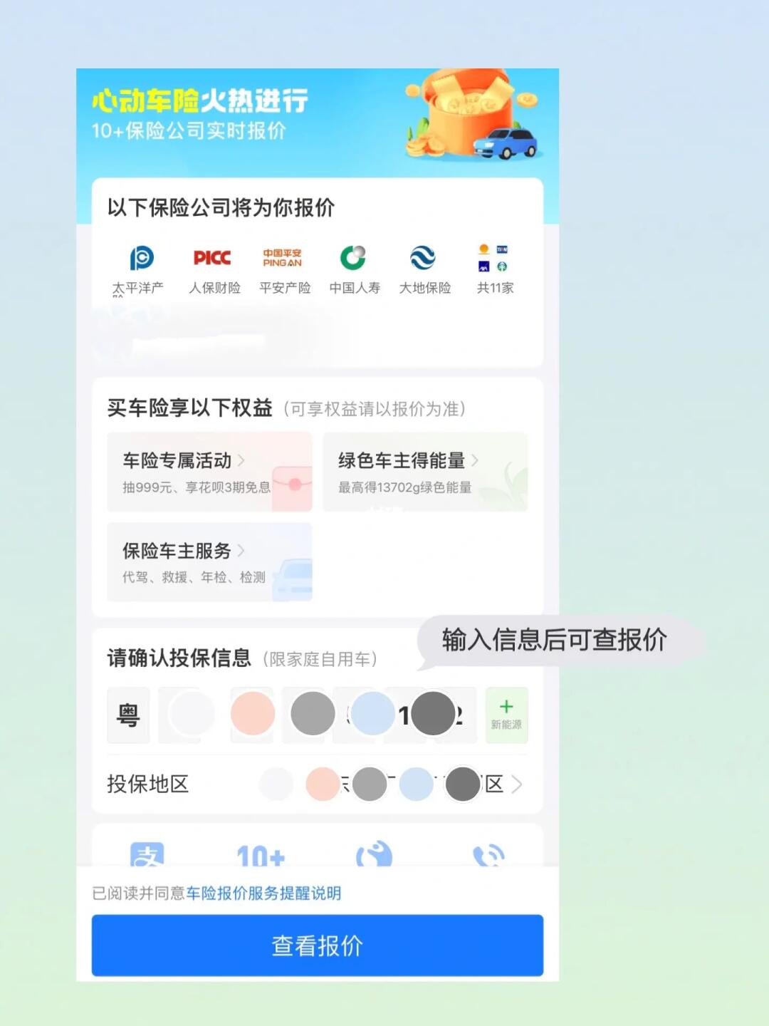 试了一下,输入车牌号就可以一键获得多家保司的报价。报价比我老公往常买的还低了好几百。
