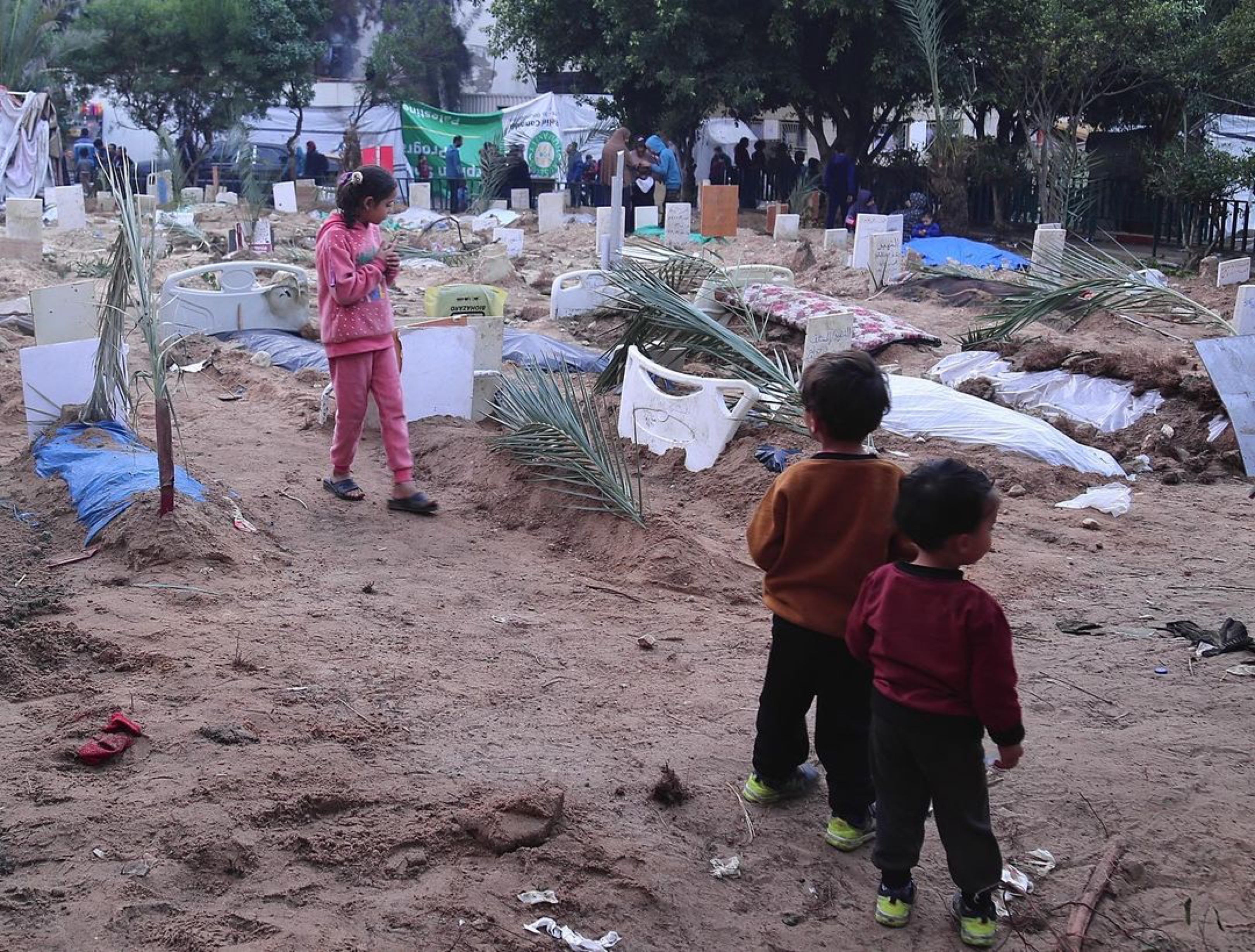 曾经的医院,现在变成了避难所和墓地。巴勒斯坦媒体报道:墓碑、帐篷、垃圾,没有任何医疗用品,这就是 Al-shifa(希法医院) 的现状。 在以色列进攻加沙地带期间,数百人在以色列的袭击中丧生,这些人被埋在医院内,期间的一段时间,医院被以军地面部队包围,他们甚至射杀任何进出这里的人。那个时间,医院里的尸体就在院子里腐烂,在不得已的时候,难民决定将它们埋在医院内,也就有了今天这样的一幕场景。