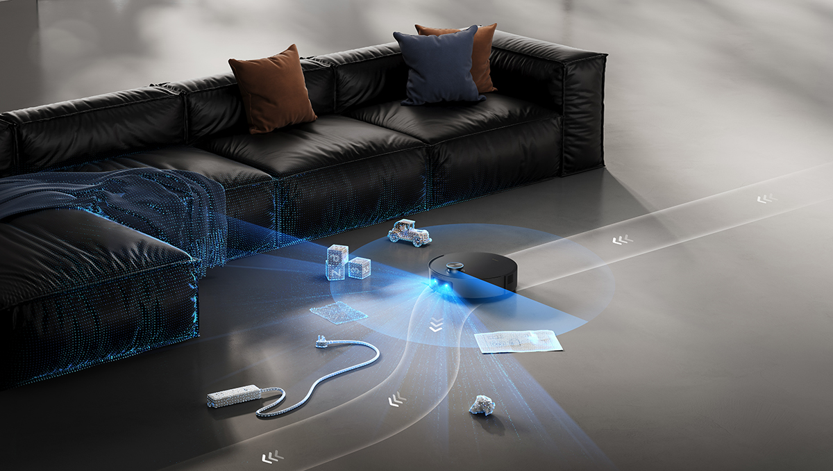 除了扫不干净,过去扫地机的另一大痛点在于避障——撞家具、卡门槛、缠数据线、被宠物粪便搞得一团糟。