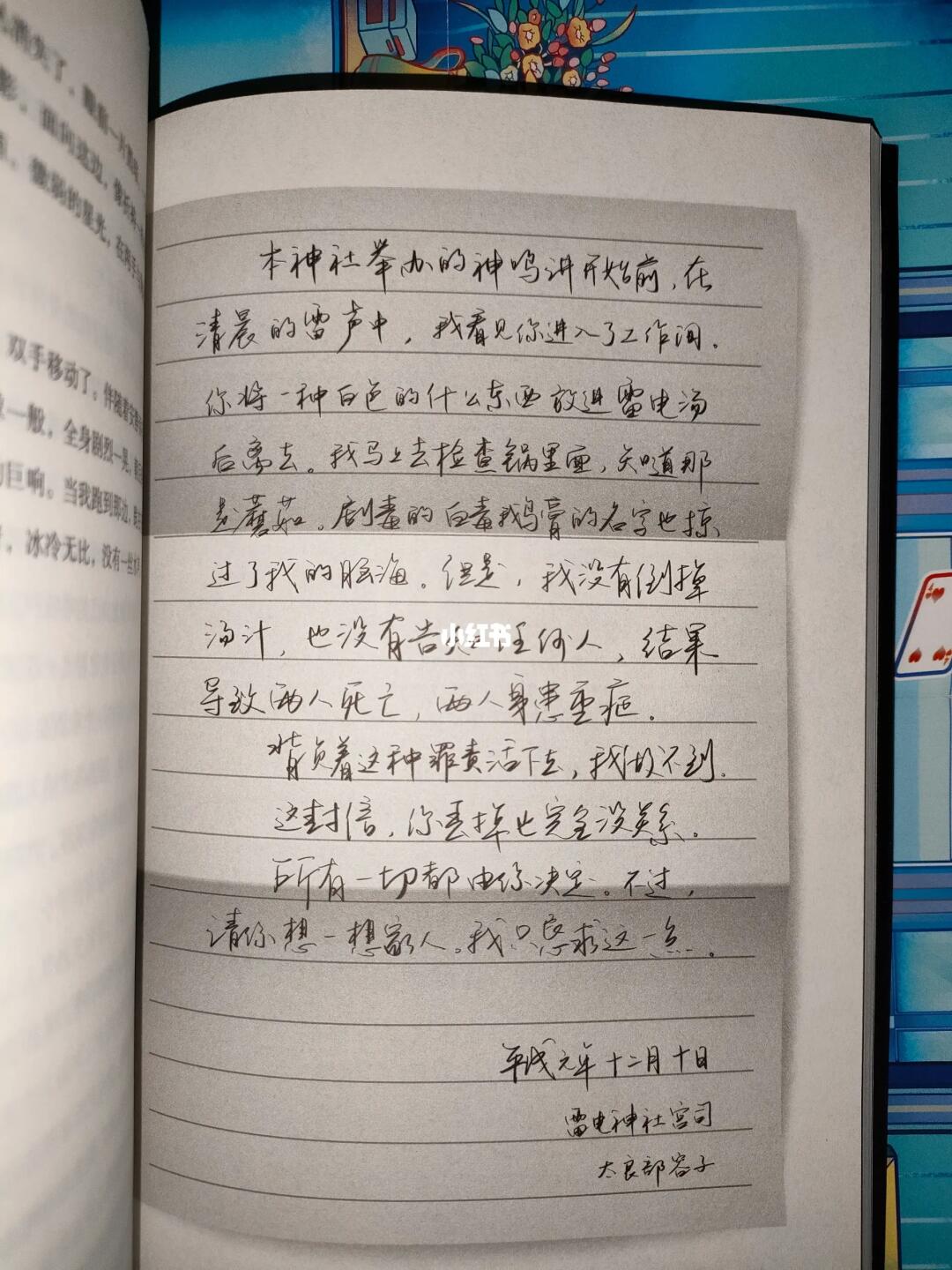 随后,神社宫司容子自缢身亡,她女儿希惠意外得知母亲生前行踪与一封信,发现幸人父亲很可能就是凶手。但因为刚刚醒来、没有机会串供的亚沙石的指认,父亲得以无罪释放。遭到排挤的幸人一家最终搬离。