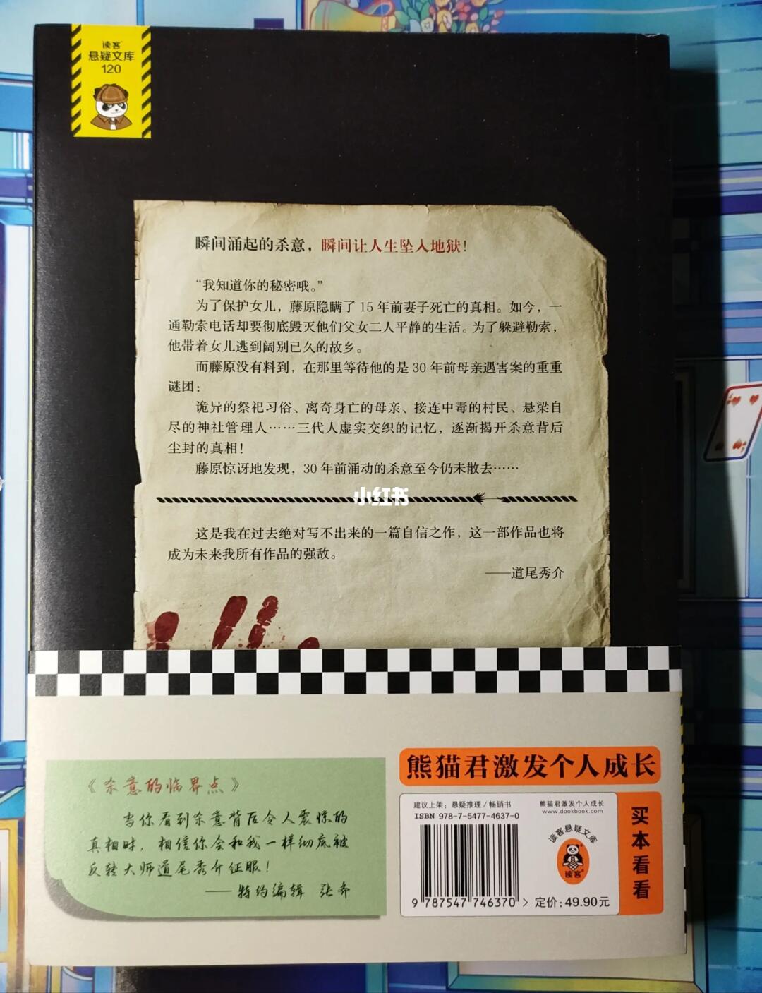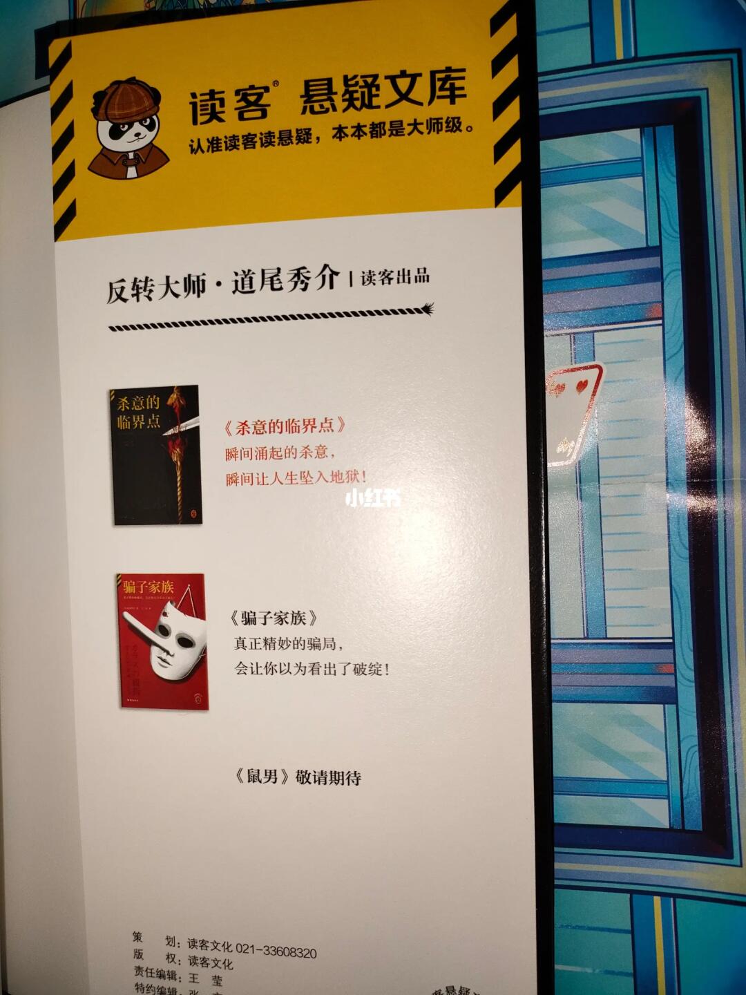 ※读客引进/再版的第二本道尾秀介(第一本是《骗子家族》,第三本是《鼠男》),虽然封面多少有点差强人意,但内页制作质量确实优秀,排版与细节都很舒服,期待后续能继续引进或再版道尾的优秀作品吧。