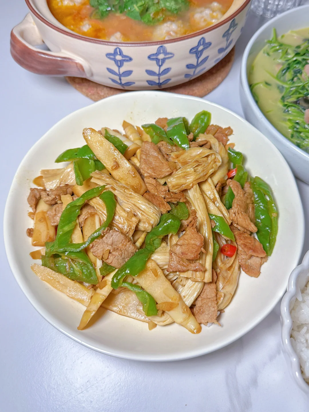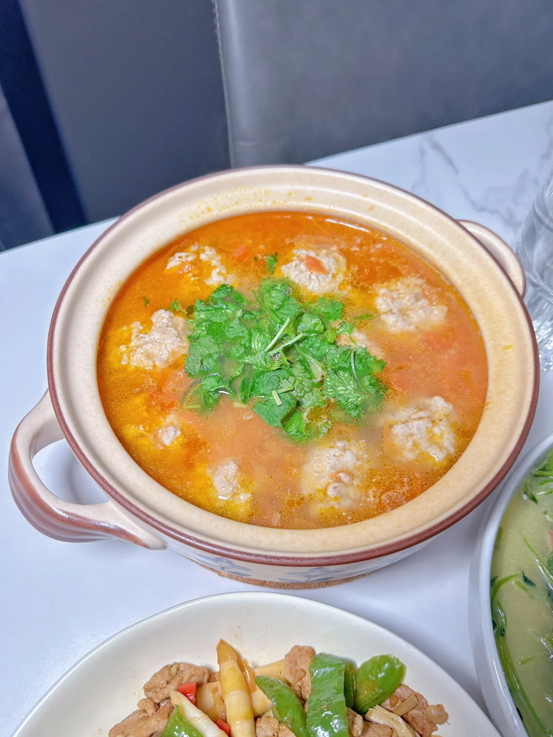 腐竹炒肉 上汤豌豆苗 番茄丸子汤🌈