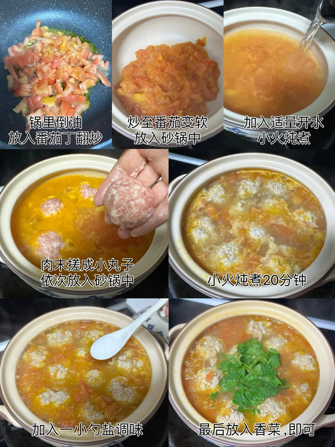 食材:番茄 肉末 香菜 生姜 小葱 生姜