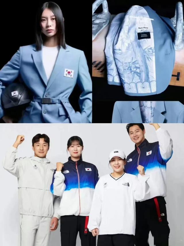 韩国队携手美国户外品牌The North Face(北面),领奖服和运动服装由以蓝白渐变为主色调,看起来很清爽。