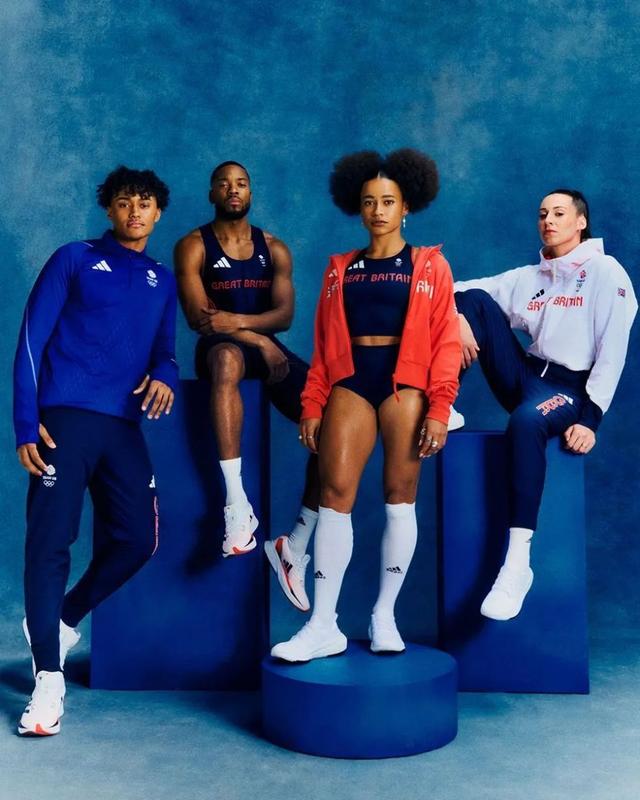 运动员服装,则由德国运动品牌adidas(阿迪达斯) 提供,依然延续“简约运动风”的概念,分别以英国的红、白或蓝为主色调,胸前印有“GREAT BRITAIN”字样,灵感来自 1924 年英国运动员的装备。