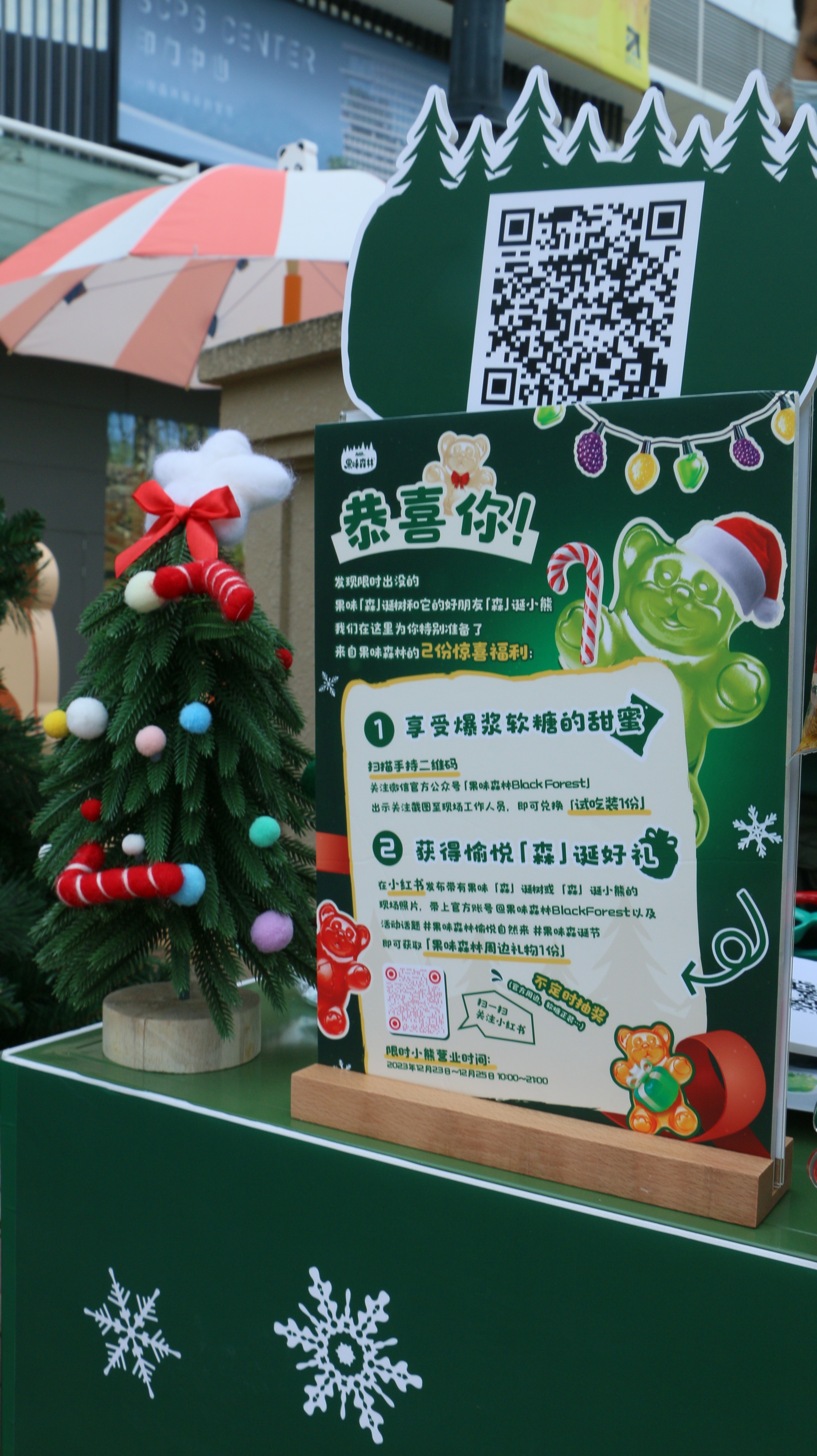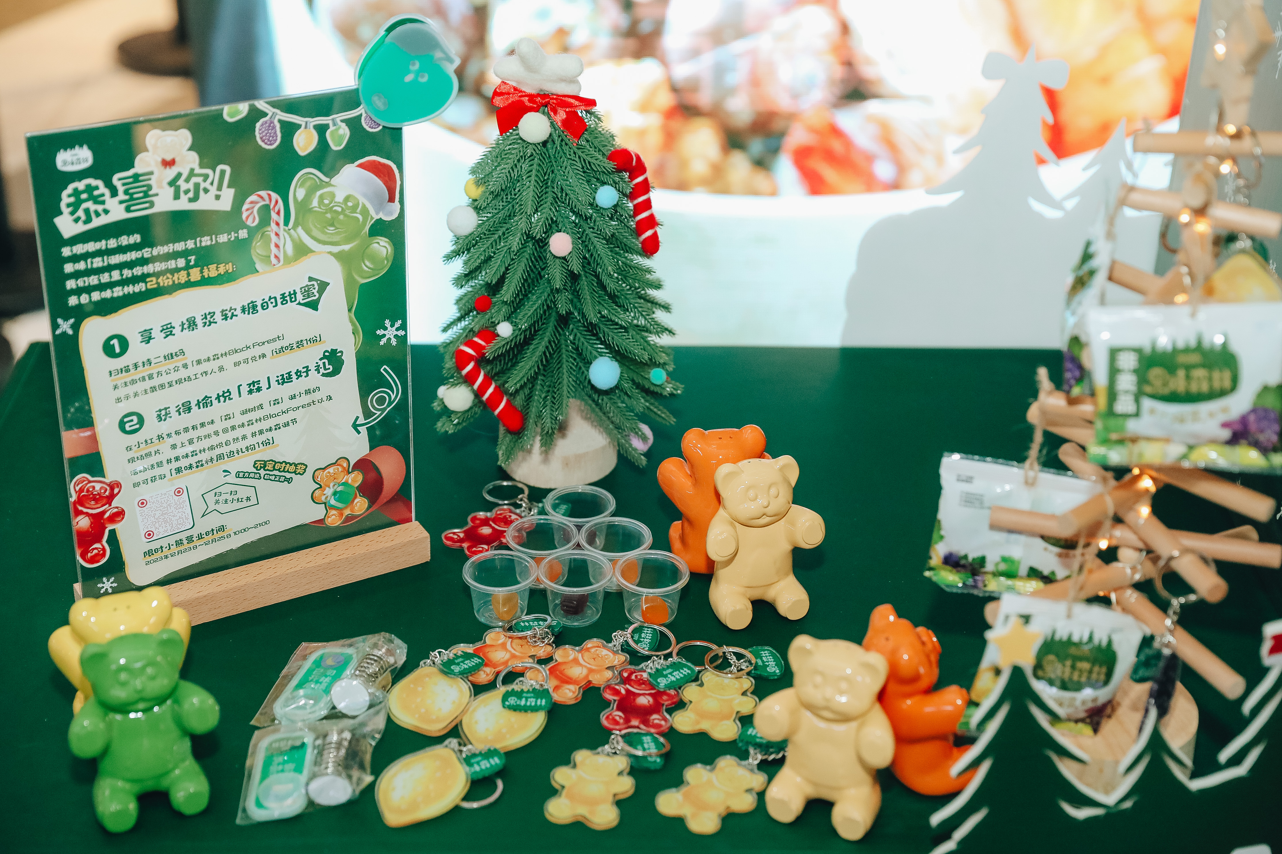 👂听说12.21-12.25去成都天府和悦广场,发现果味森林「森」诞树,可以免费尝到果味森林爆浆软糖和熊仔软糖!🥳爆浆软糖酸甜适中的夹心真的超好吃😄