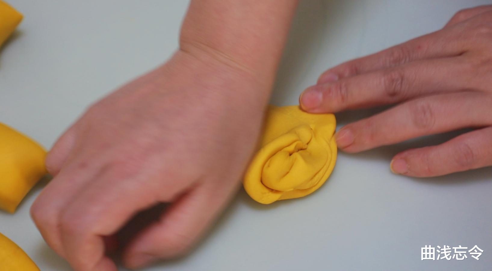 7、揉小剂子:每一个小剂子都要充分的揉至光滑。手法用手掌根部把面团从外围往中心位置揉,一边揉一边转动,一圈又一圈的揉。大概揉20下左右。