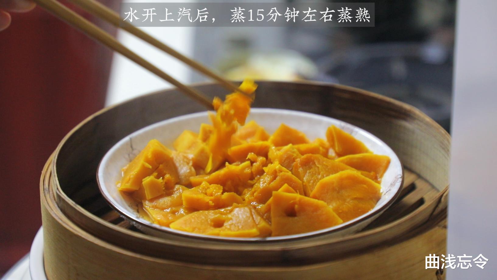 1、蒸南瓜:南瓜去皮切片,放入蒸锅,蒸15分钟左右蒸熟。