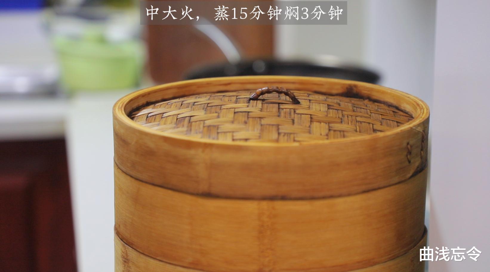 10、蒸制:冷水上锅,开火,中大火,水开上汽之后开始计时15分钟,蒸好关火焖3分钟。