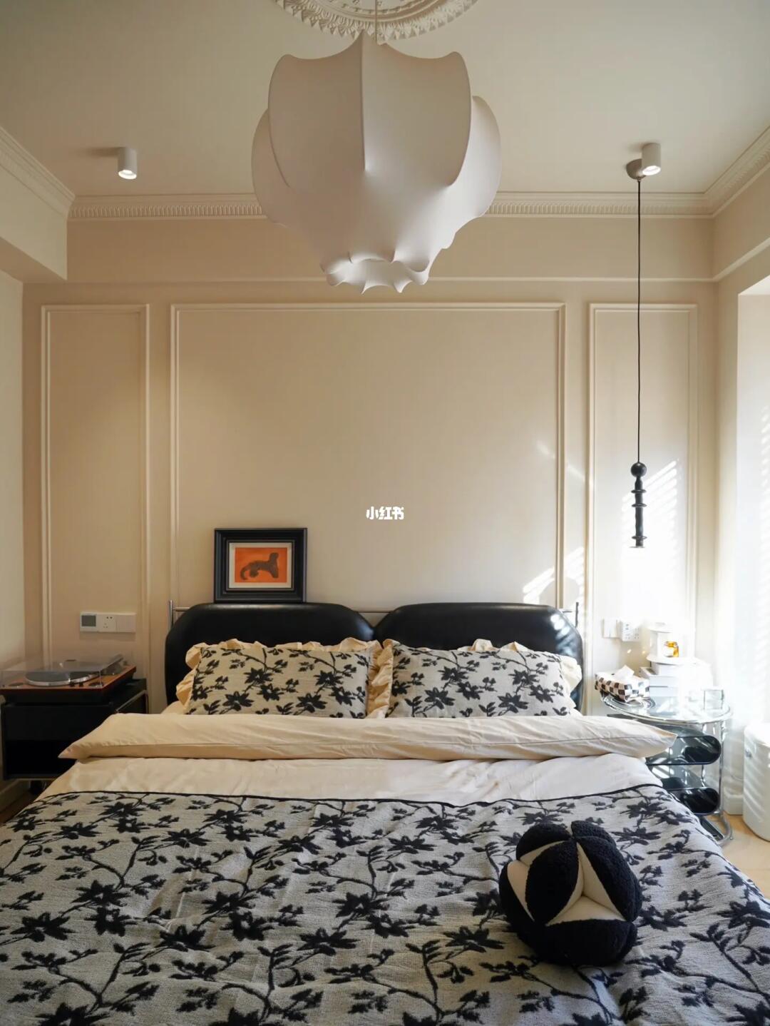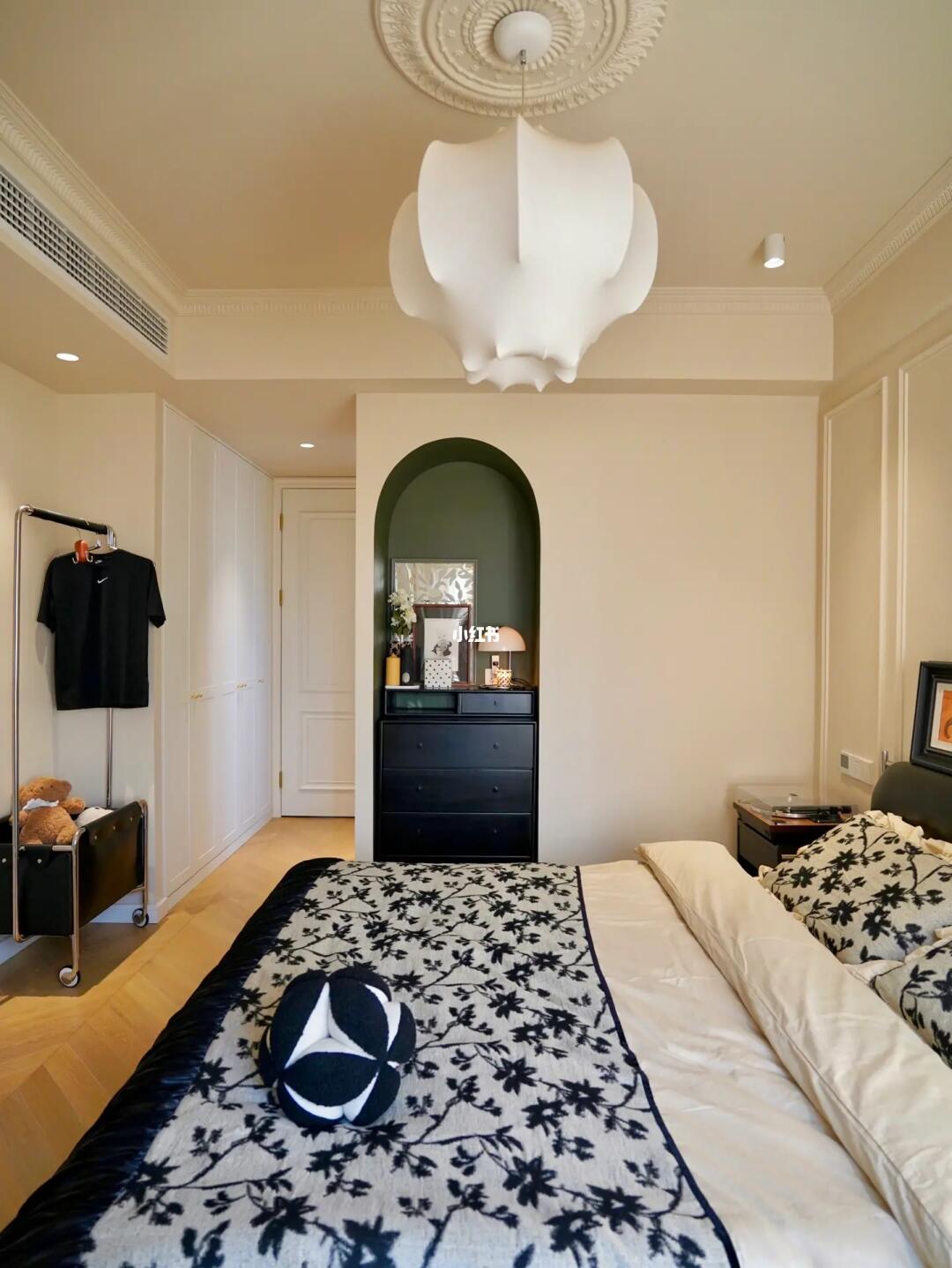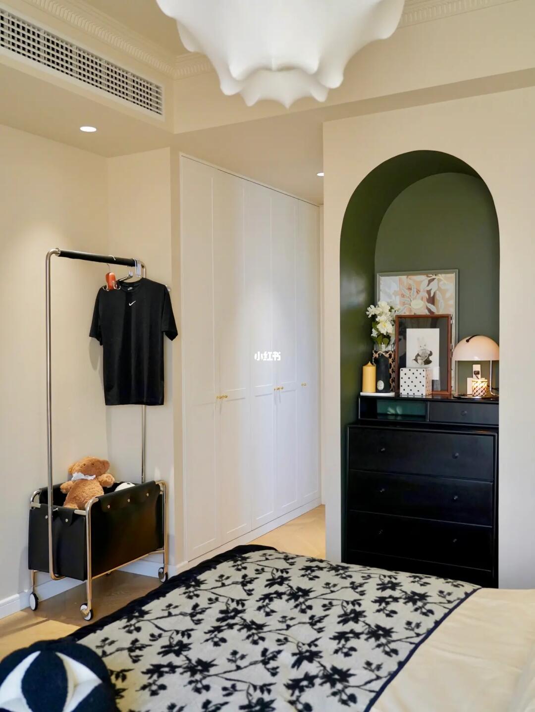 - 我家的主卧面积大概在15m'不到 整体色系以黑色、绿色和燕麦色为主 墙面选择3.5cm的pu线条 搭配法式又复古的灯盘 全屋通刷燕麦色乳胶漆 绿色拱形门洞点缀一侧墙面兼顾收纳 一排衣柜“藏”在进门处的门后面 考虑到飘窗使用率不大所以全部敲除扩大空间 普通人的家除了好看当然也要实用啦~