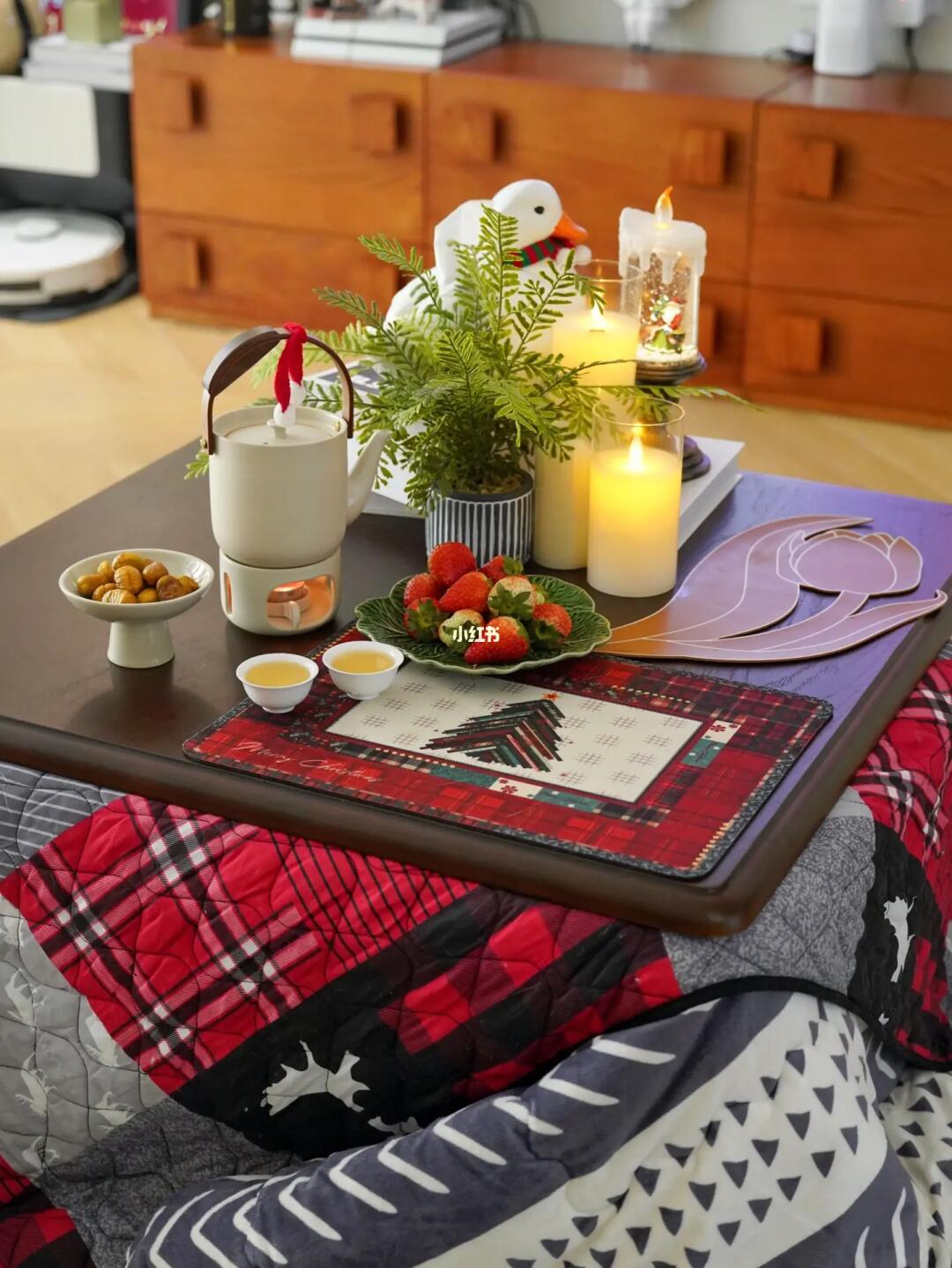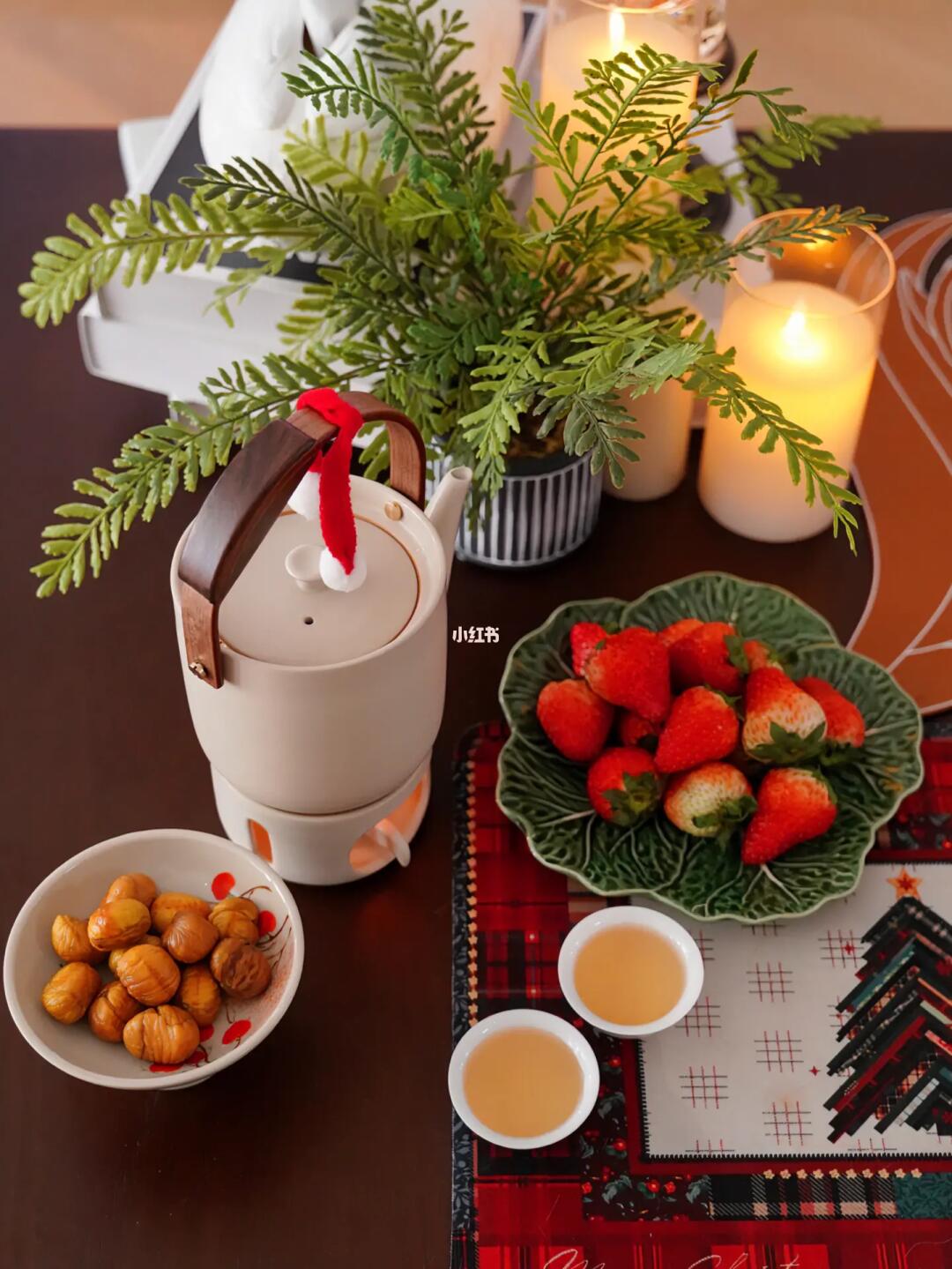 . 刚认识的朋友问我为什么不喜欢出门 直到我发了一张我家的照片给她… . 有暖桌、草莓🍓、板栗子🌰、有热茶🍵 有刚好准备看且已经连载完的剧 夜里点上一根蜡烛🕯️打开圣诞树的灯 圣诞节的氛围感一下就有了~
