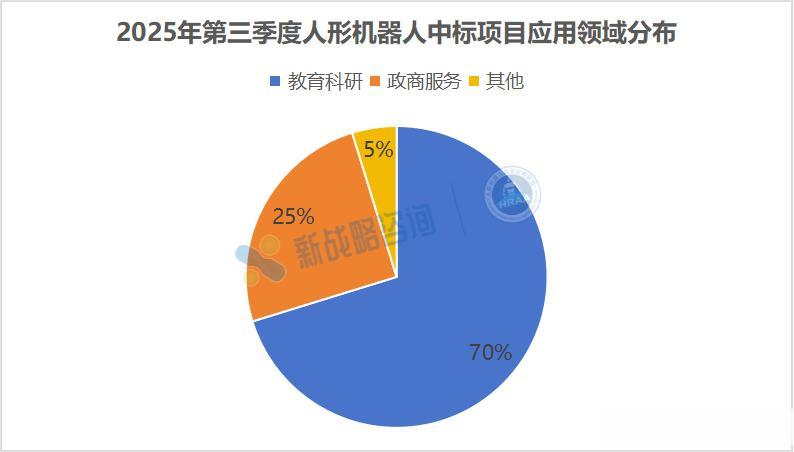 从用途来看,2025年三季度的人形机器人中标项目主要集中在三个方向:教育科研、产业示范应用与试点部署、数据采集,其中教育科研依然是绝对主流。