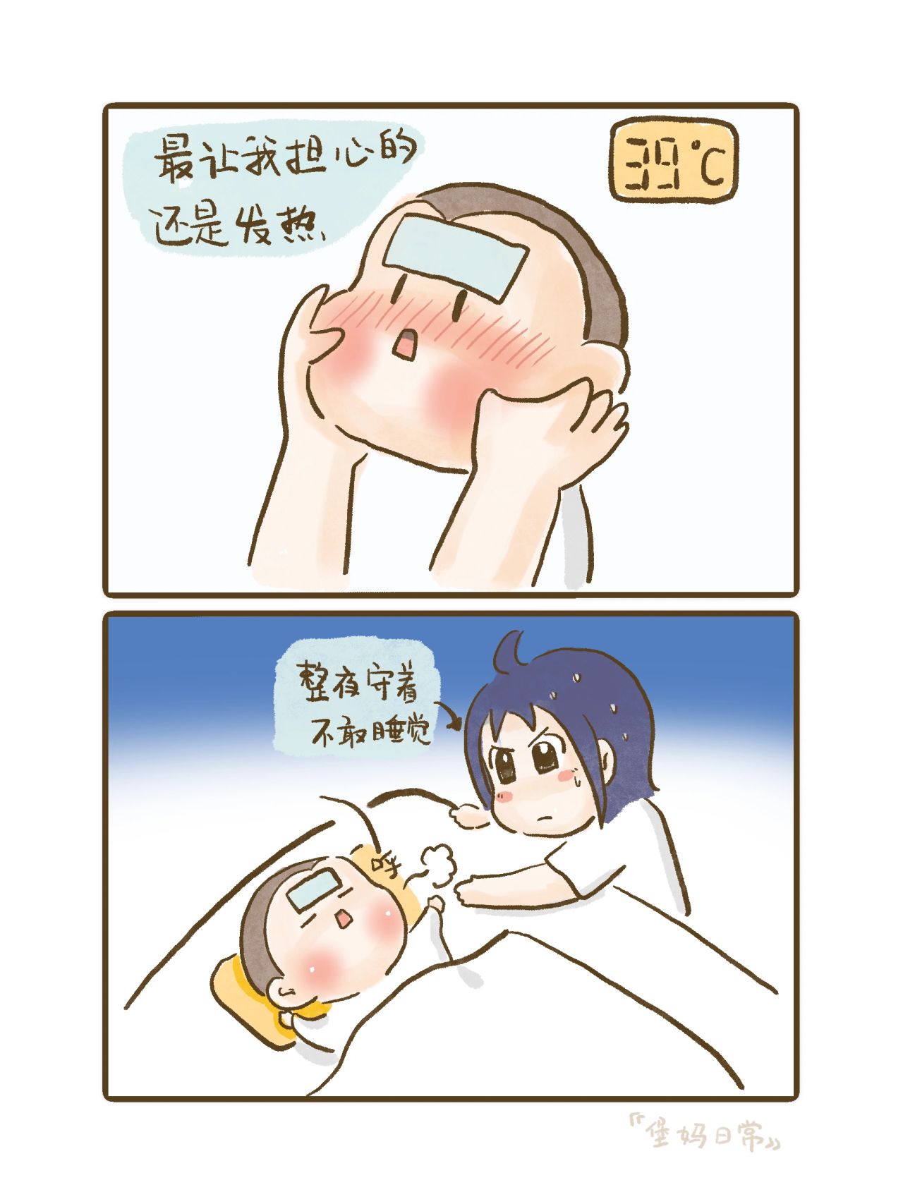 最重要的还是要观察宝宝精神状态,但腋温超过38度2就要用退烧药了,蛋堡果然夜里又反复发热,我每隔6小时给他喂一次💊,还配合了物理降温,给他温水擦身体,在额头,腋窝和腹股沟贴退热贴……[皱眉R][皱眉R]