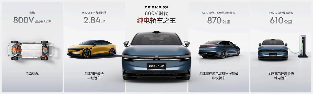 20.99万-29.99万元,当屏幕上出现极氪007的售价之前,我还在跟朋友说,以极氪X的定价来看,极氪007四驱性能版应该得是40万左右,没想到话音刚落就被全场欢呼实力打脸。全栈800V、加速2.84秒、续航870公里、智驾拉满的极氪007真的是杀疯了。 2024年的新发布的新能源车,如果没有800V平台,那一定是遥遥落后了。极氪007全系标配800V系统,在性能上取得多项突破。搭载475kW高性能碳化硅电驱系统,零百加速最快仅需2.84秒,成为全球加速最快的中级轿车。四驱性能版更以“功夫黄”专属配色示人,通过专业调校,实现了极致的驾控体验。极氪007提供两款动力电池选择,其中搭载自研75kWh金砖电池的版本续航里程最高可达688 km,搭载100kWh麒麟电池的版本更是能到870 km。在800V极充桩的加持下,两款电池充电15分钟续航可以分别增加500公里和610公里。 在007之前,极氪的智驾一直没有跟上大部队,现在在Orin芯片和包括一个激光雷达在内的31个感知硬件的加持下, 极氪终于在007上把“浩瀚智驾”落地了。除了高速和城市NZP领航辅助驾驶之外,还针对智能泊车的用户痛点进行了特别优化,“指尖泊车”系统可以解决之前智能泊车无法覆盖的而又确实是用户痛点的非标准车位,另外在停车场景里面最难的机械立体停车位极氪007也能实现智能泊车。这些功能都将在交付后2024年中之前陆续OTA开通。 开启预售之后极氪007在40天内收到了超过5万个订单,正式上市更是给了一个无敌的全系售价,而且还可以限时以2万元选配100kWh电池。极氪007这个产品力这个价格,真的是让特斯拉Model3和即将上市的小米SU7都得好好再考虑一下重新定价了。【来自懂车帝车友圈】