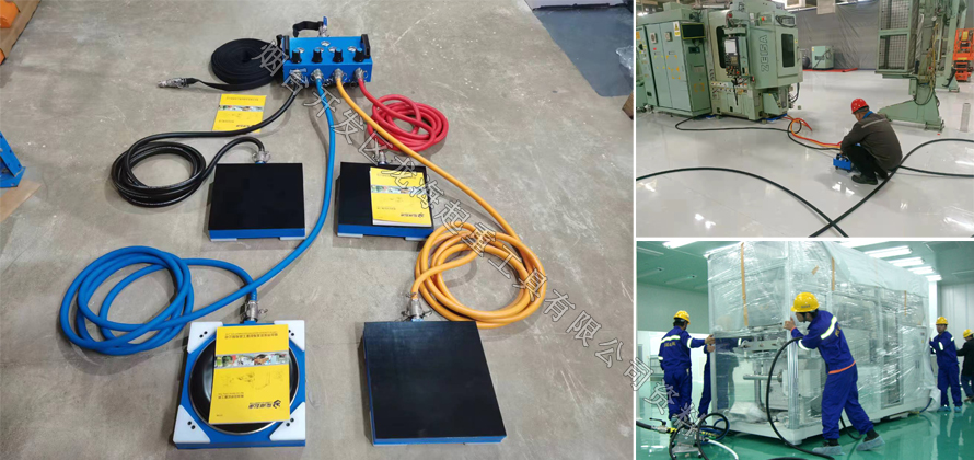 它通过气囊在设备底部形成一层极薄的气膜,将滑动摩擦转化为流体摩擦。一旦悬浮起来,几个人拉着牵引绳,就能轻松移动数十吨设备,无振动、无异响,还能保护地坪。