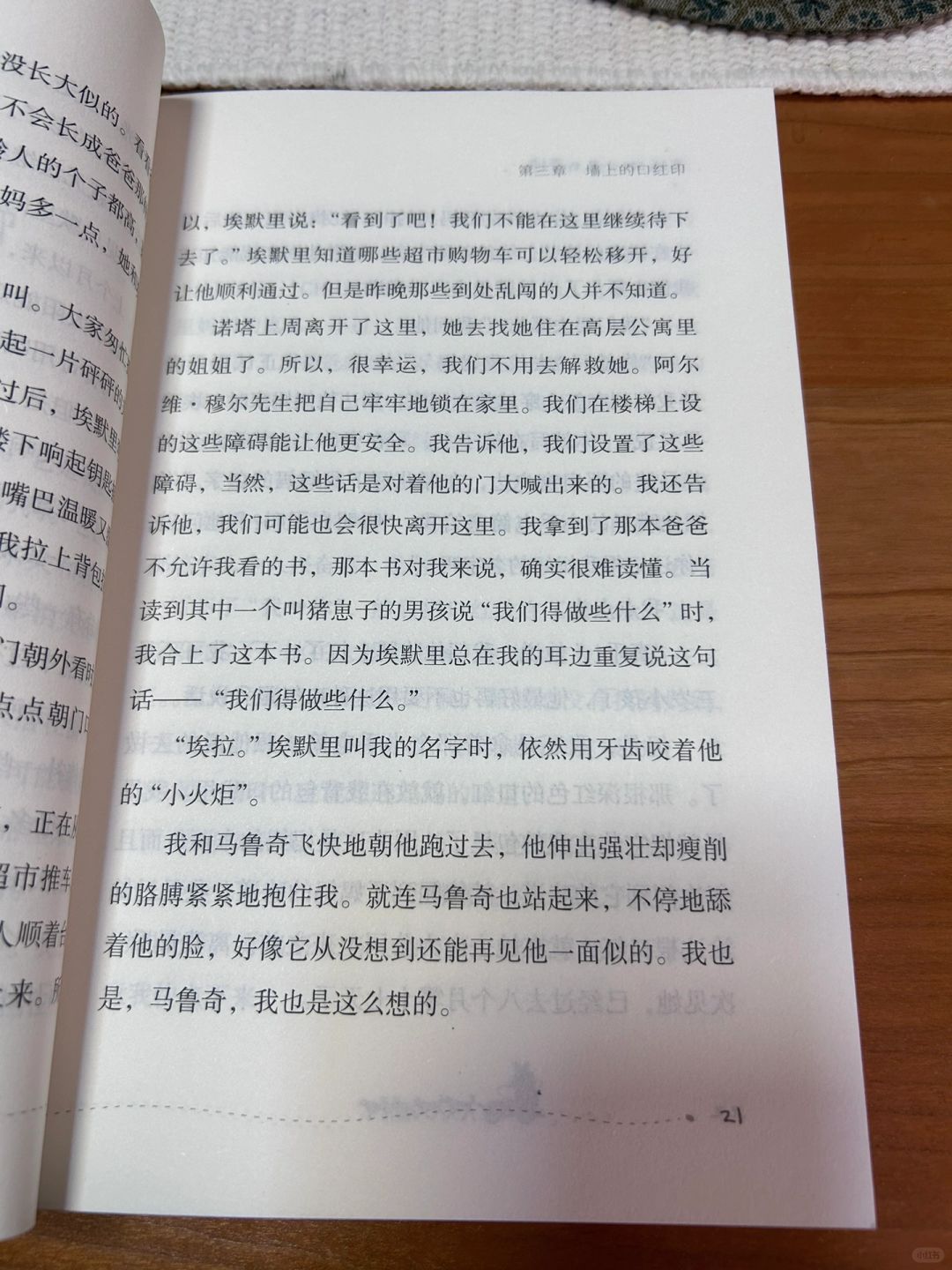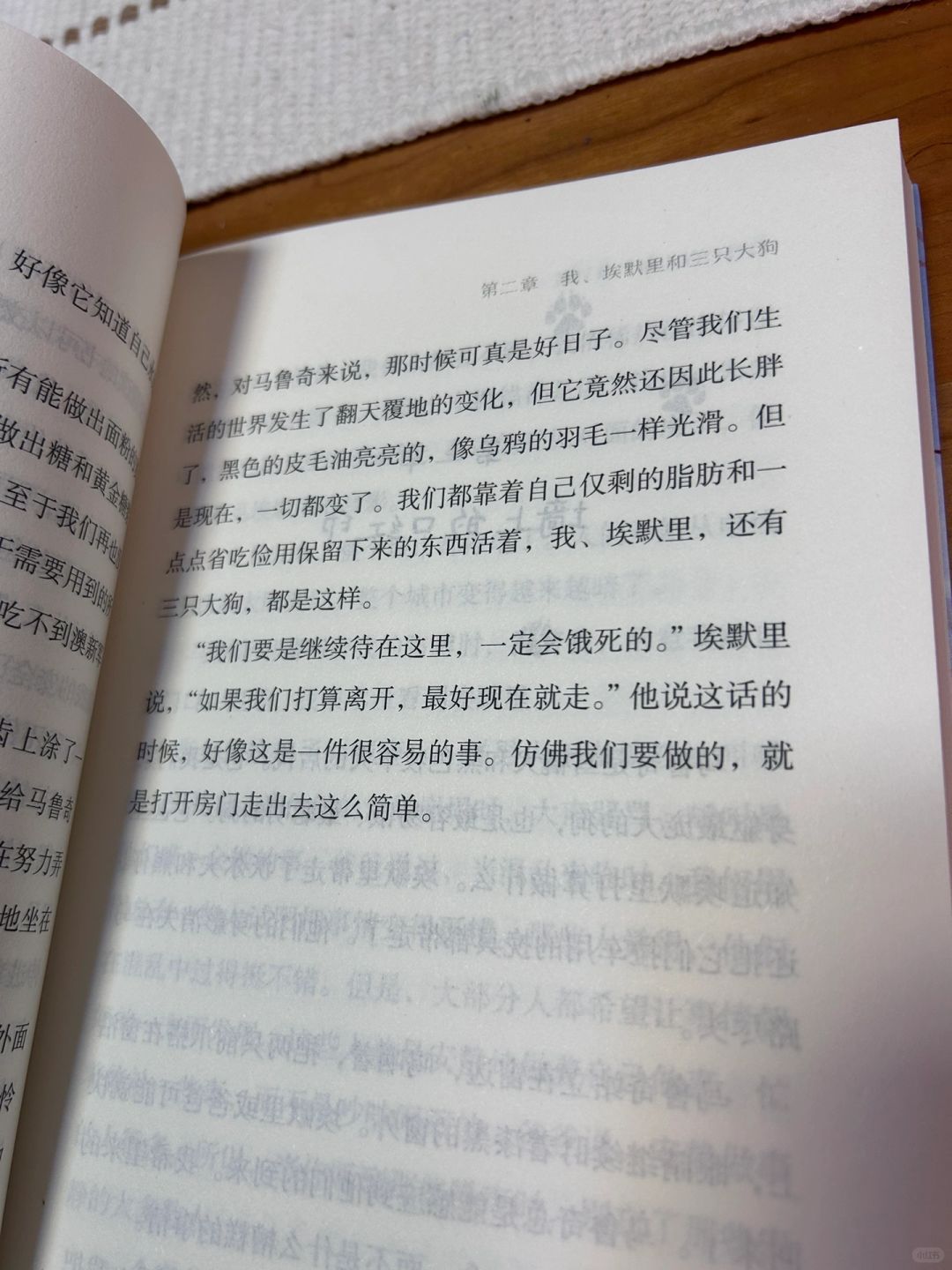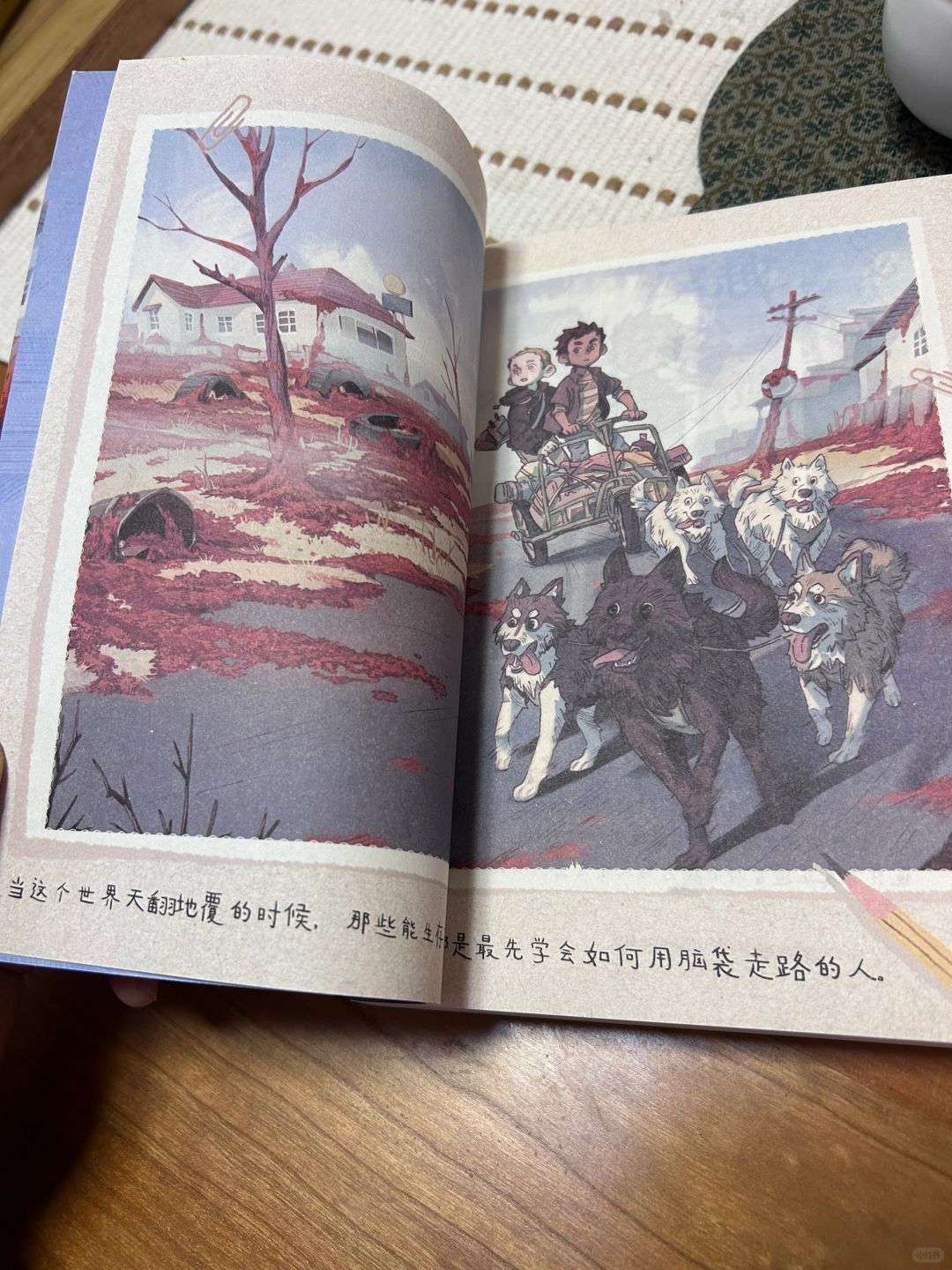 故事的另一个主人公——埃默里,只比埃拉大四岁的哥哥,似乎一开始就格外可靠,有着超强的决断力和行动力。在突生变故的环境中,他懂得主动寻求生机,带着埃拉和五只狗狗踏上了一场生死未卜的旅途。面对未卜的前途,他并不畏惧,我们在读故事的过程中会愈发感受到这份勇敢。