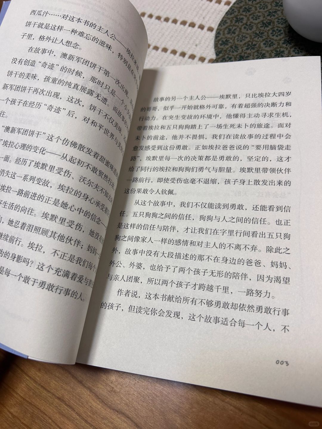 有了孩子以后,我开始关注童书领域,想要为她筛选出好的童书,希望她能够通过阅读,慢慢地领悟诸如勇敢、善良、友爱等美好的品质。这本《穿越500公里的奇迹》是一本能够让不勇敢,胆怯的孩子领悟勇敢品质的童书,适合小学生阅读。