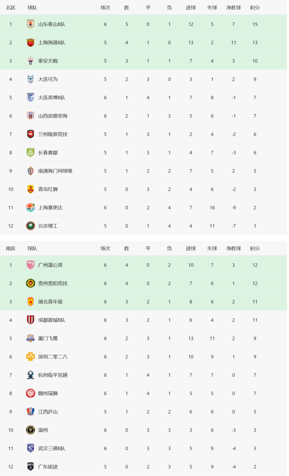本轮山东泰山B队坐镇临沂大学体育场,凭借第66分钟郝富博、第81分钟邓淳泽的进球,主场逆转战胜对手。泰山B队强势发挥斩获5连胜,反超海港B队升至北区榜首。上海赛更达在第61分钟和韶麟罚进点球领先,可是没能守住,连续6轮不胜战绩不佳。